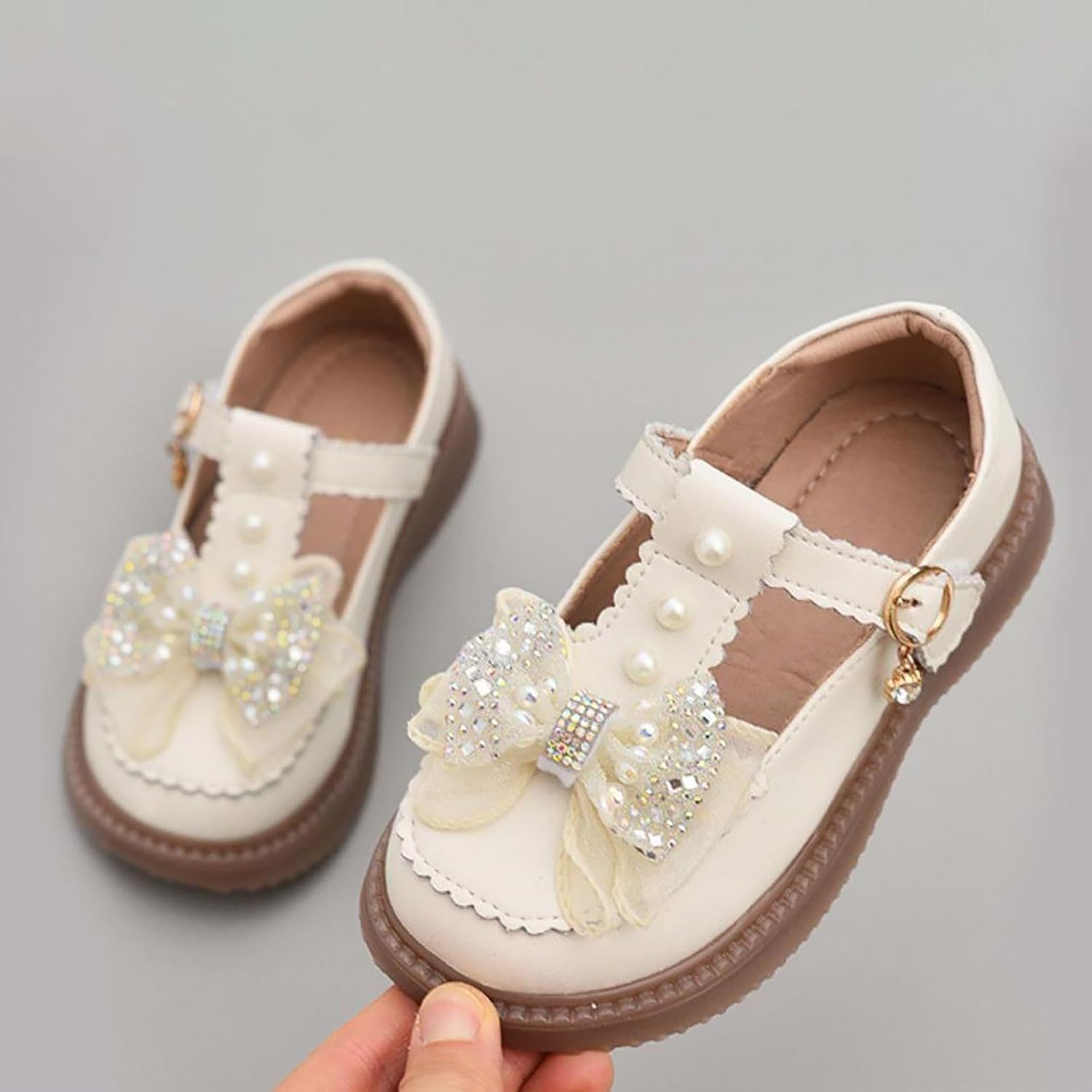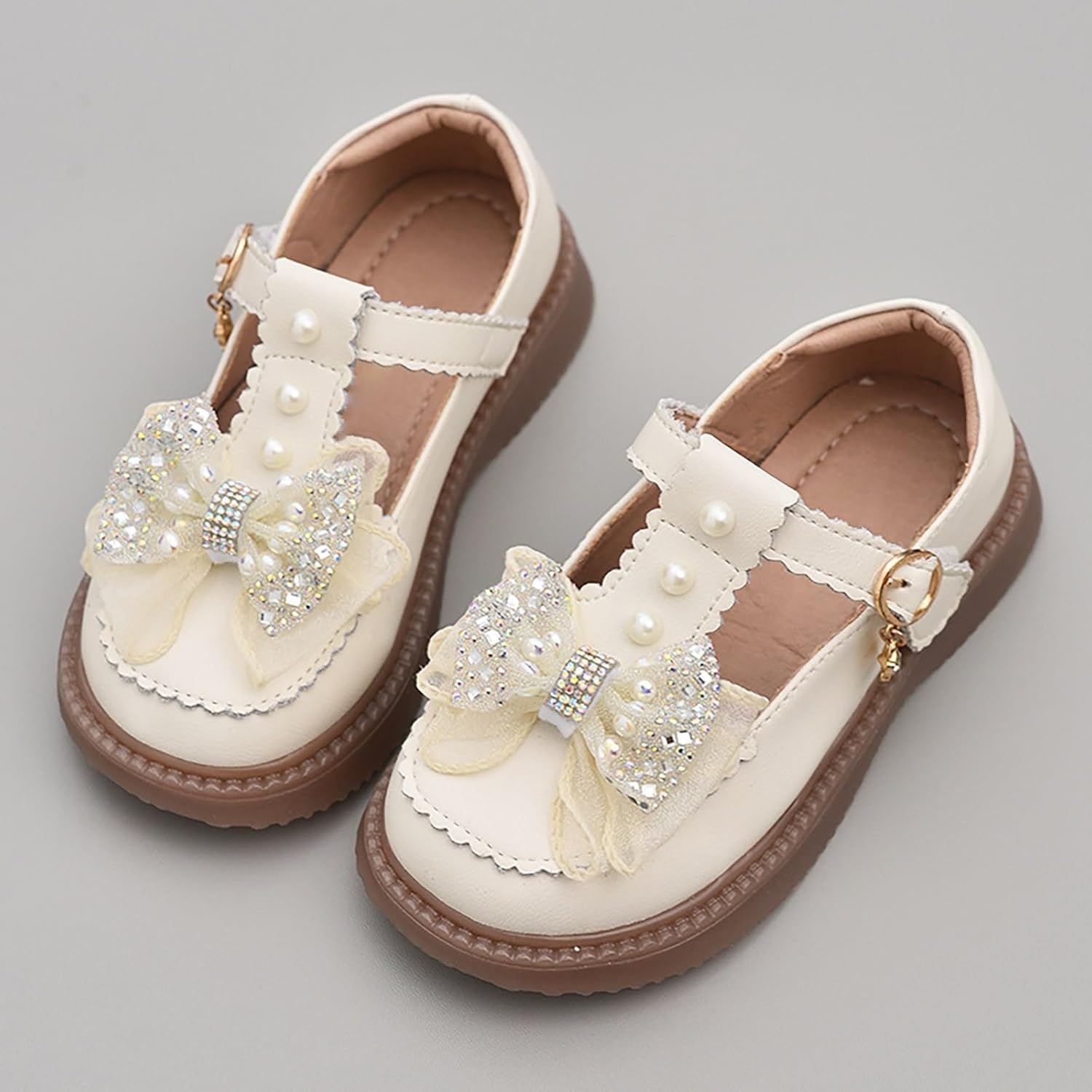 OBiQuzz Baby Knitted Shoes Lace Bow Rhinestone Closed Toe Soft Casual Shoes Non-Slip Suitable for Princess Dress Sandals Toddler Boy, White, 10.5 UK Child