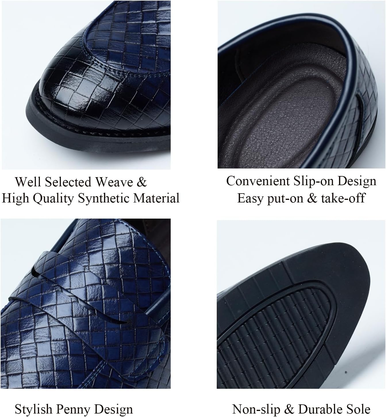 Ophestin Men’s Loafers Moccasins Weave Formal Dress Shoes Slip-On Driving Business Shoes