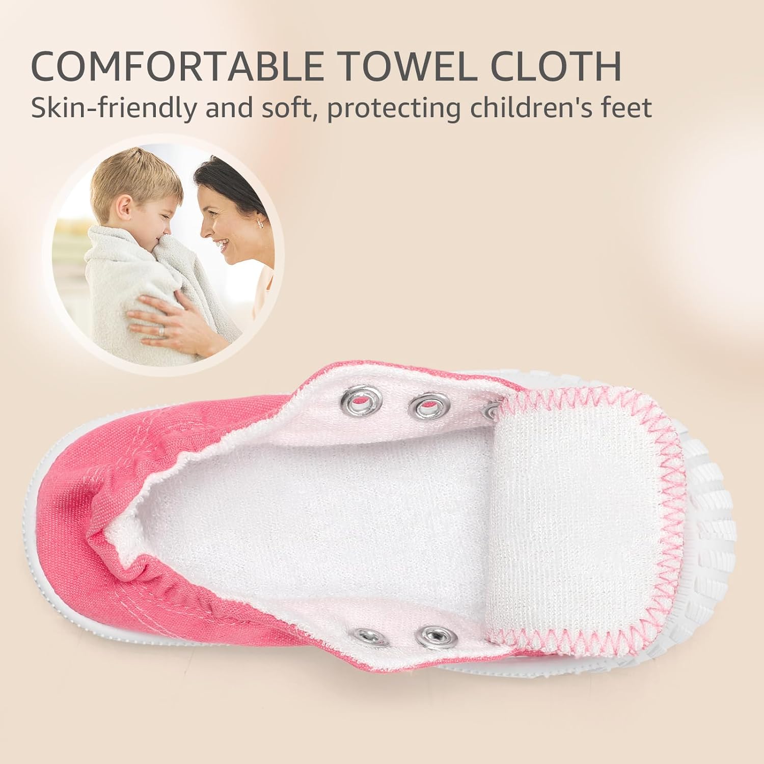 Made from soft, skin-friendly terry cloth, kids trainers provide all-around comfort and care for your little feet.
