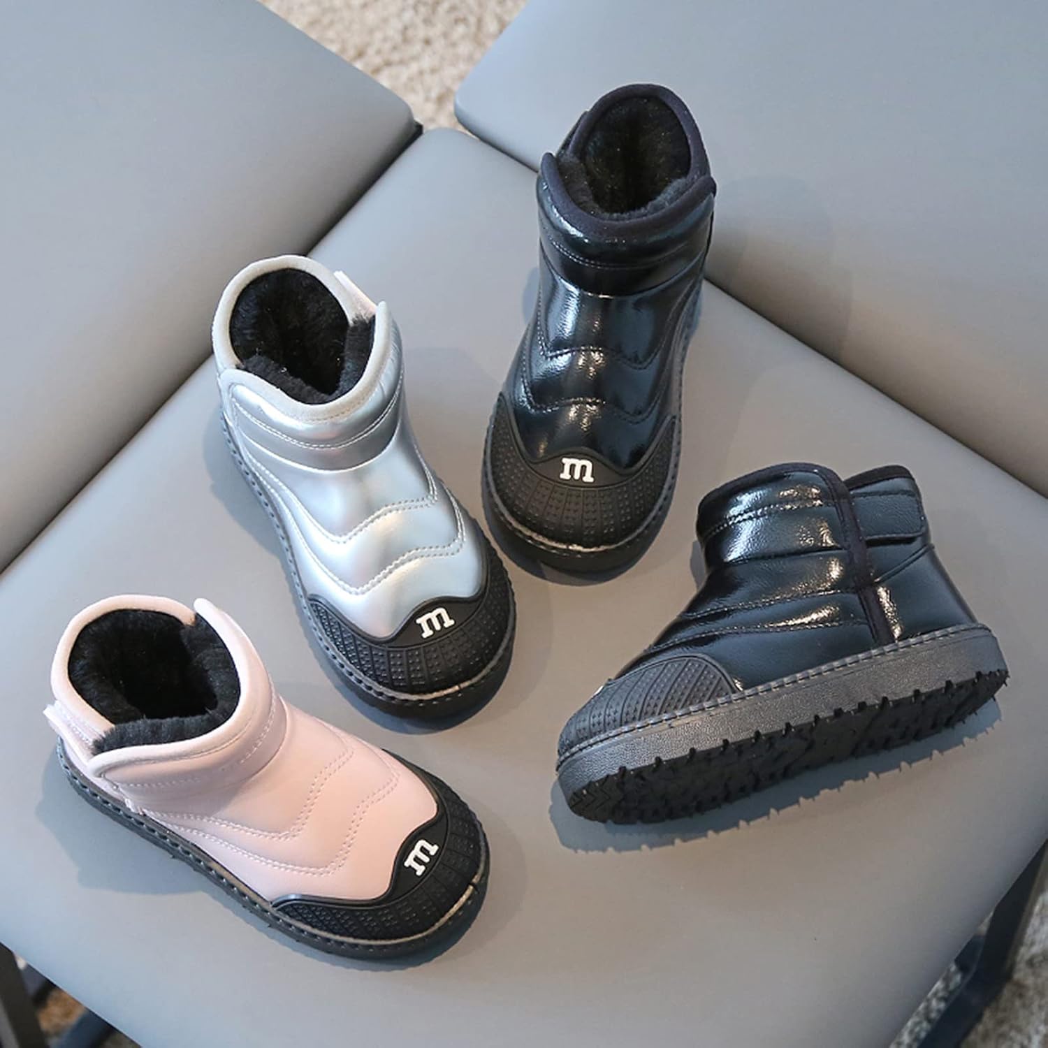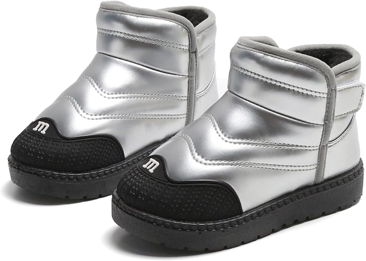 Toddler Boys Girls Snow Boots Baby Boy Fall Warm F𝘂r Lined Boots Winter Wa𝘁erproof Outdoor Ankle Booties Non Slip Shoes for Baby Toddler School Classic 𝗢xford Boots (Silver, 1 Big Kids)