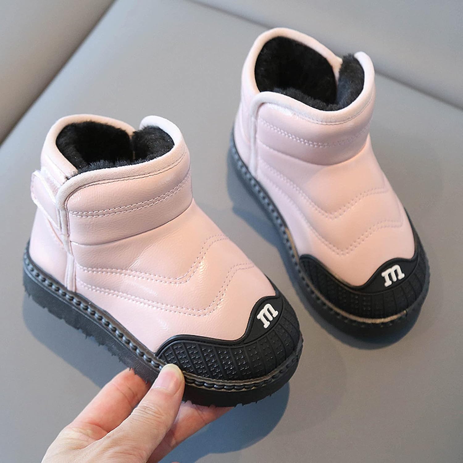 Toddler Boys Girls Snow Boots Baby Boy Fall Warm F𝘂r Lined Boots Winter Wa𝘁erproof Outdoor Ankle Booties Non Slip Shoes for Baby Toddler School Classic 𝗢xford Boots (Pink, 13.5 Big Kids)