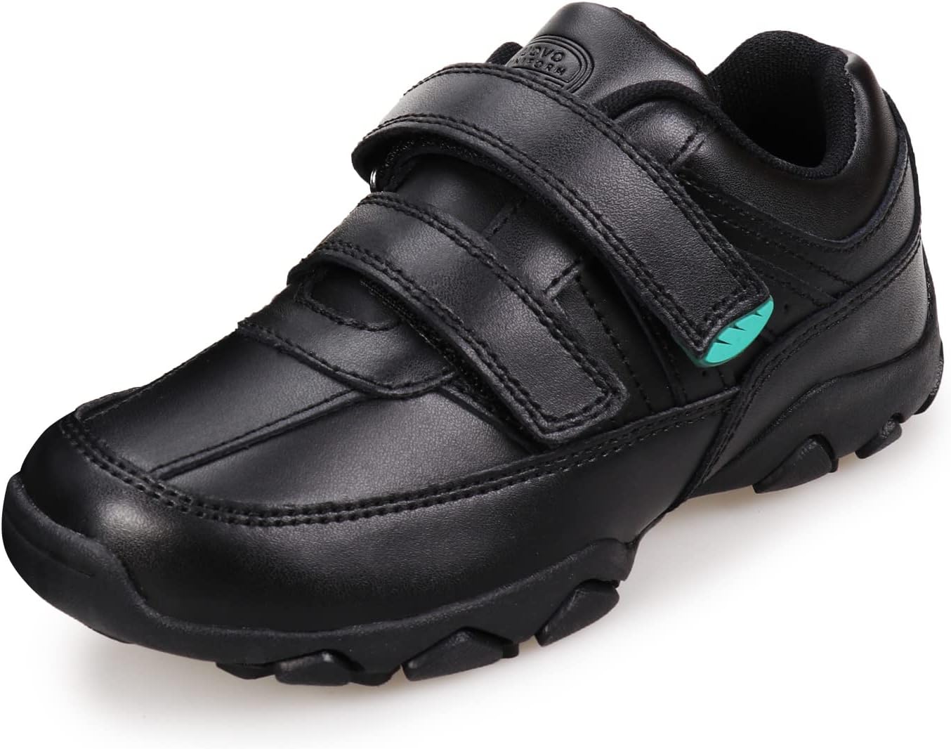 Features a breathable and water resistant upper which provides the ventilation your boys need and keeps feet dry all day. Skin-friendly /soft lining and cushioned foam insole ensures long lasting comfort.To make sure each step is steady, the super-durable outsole featuring lightweight and flexibility provides plenty of traction grip to keep your kids sure-footed.For easy on and off, Adjustable hook & loop closure will enable your boys to easily slide there feet in and out of these boys black trainers/boys school shoes.