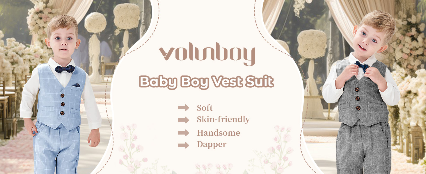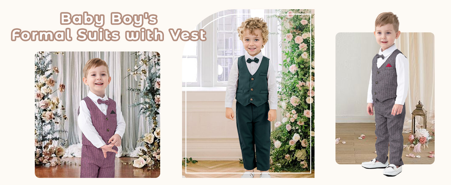 Volunboy Baby Boys Gentleman Suit, Toddler Formal Waistcoat Outfit Wedding Shirts + Vest +Bow Tie 4 PCS Set