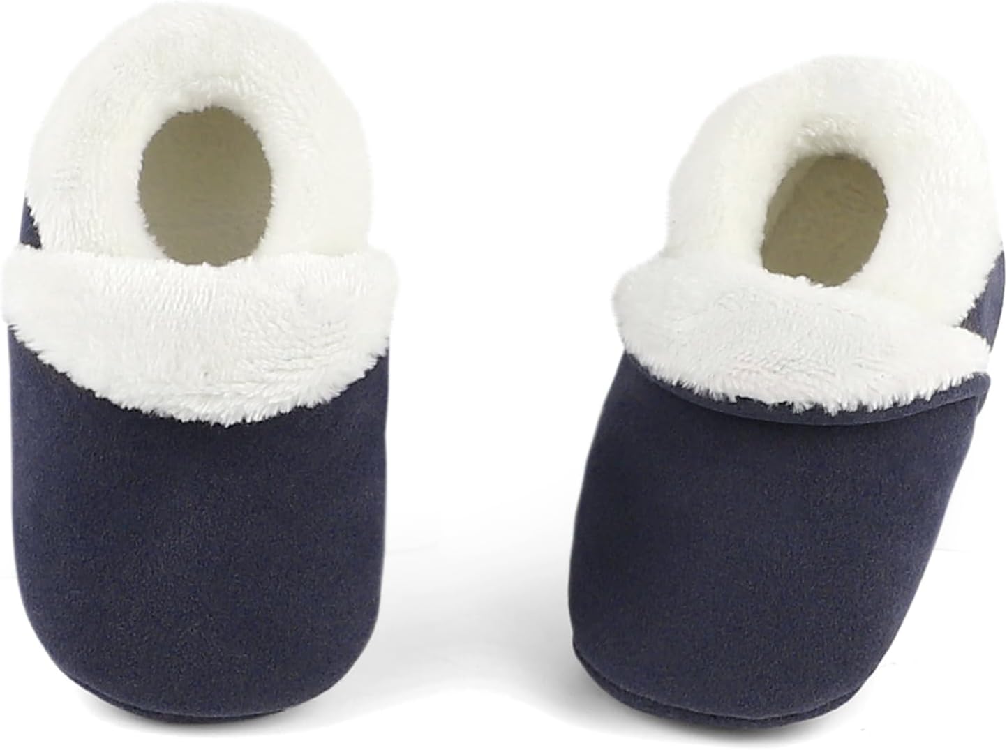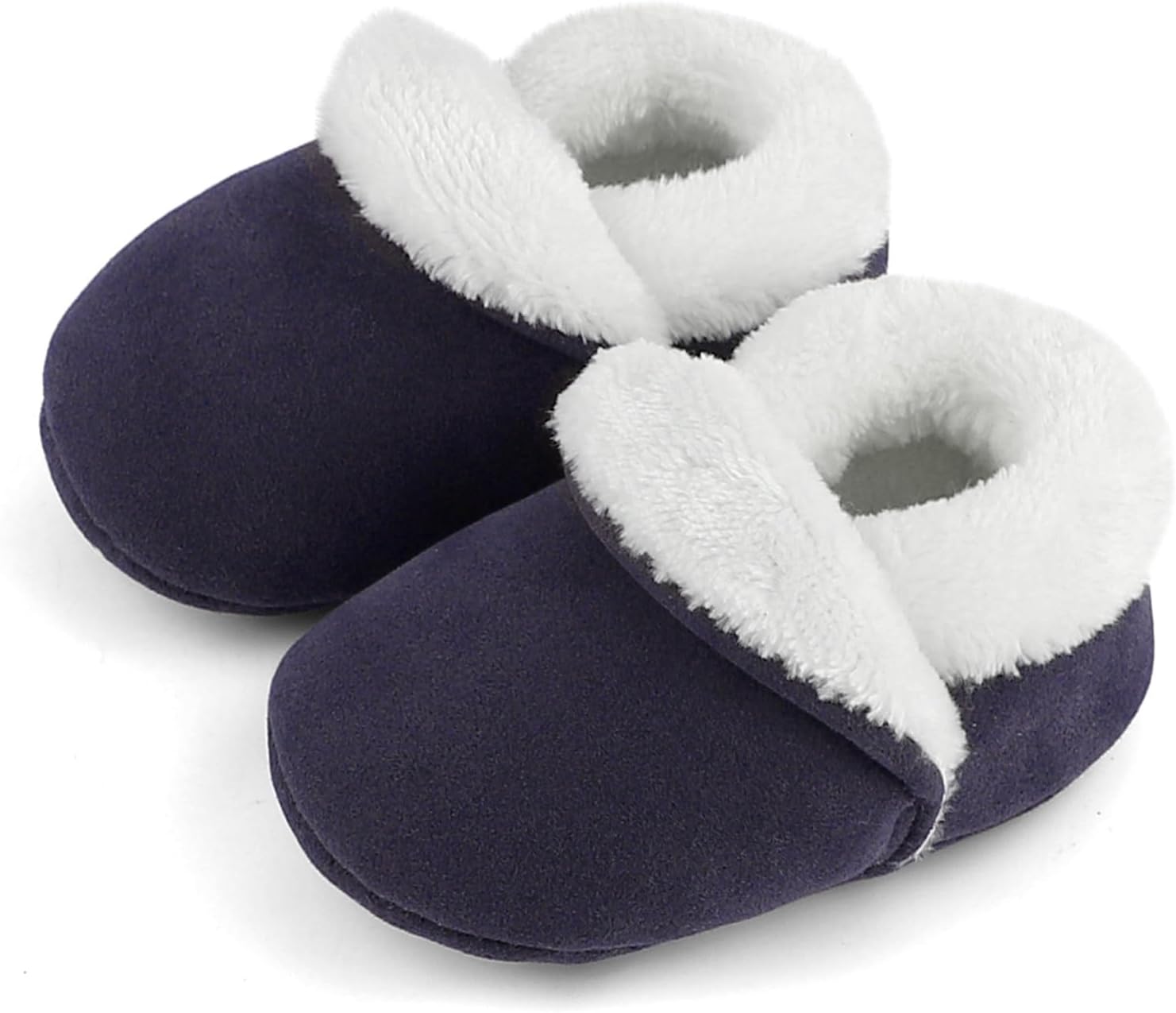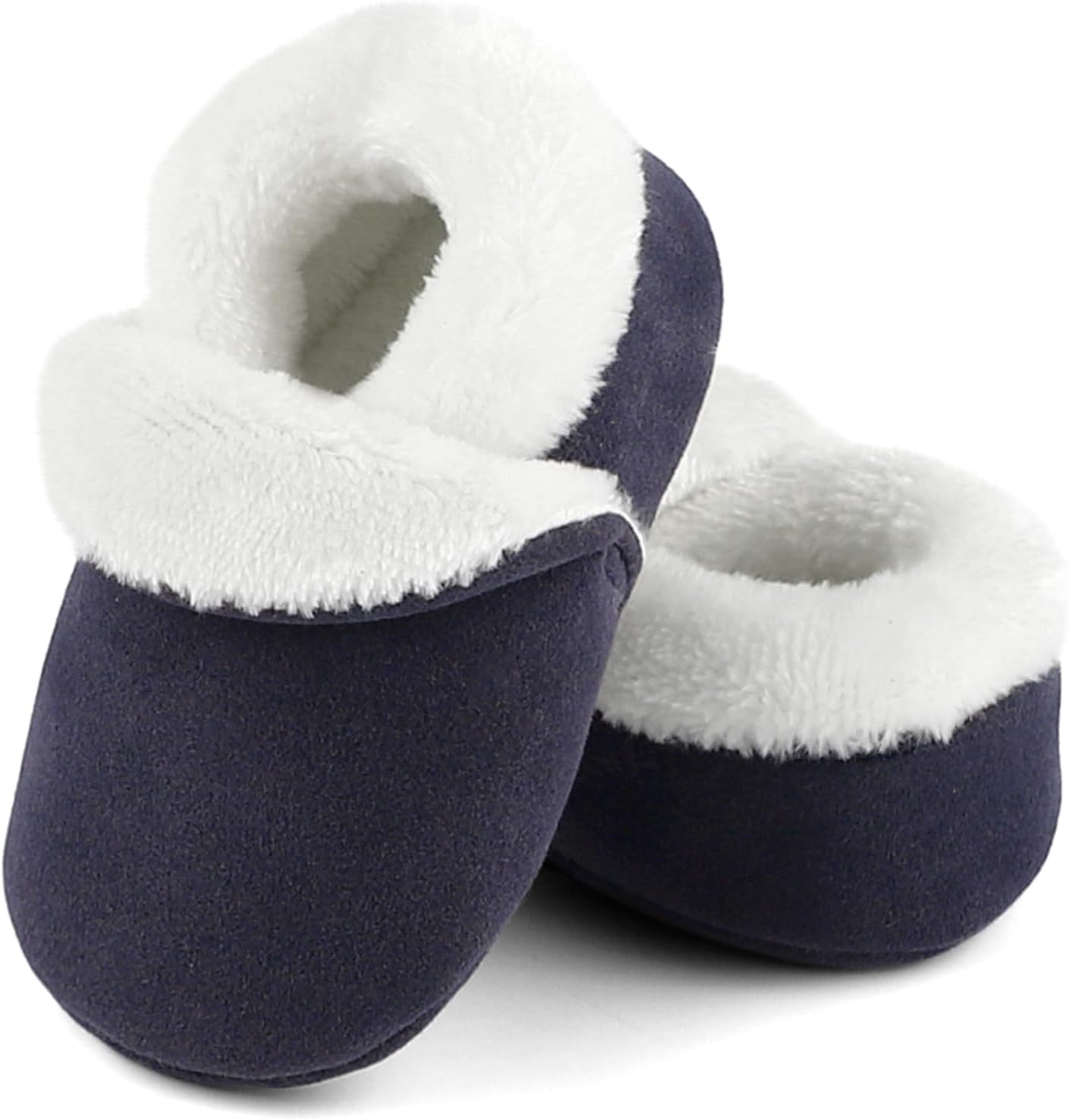 Comfy and durable baby slippers, suitable for crawling step, stand learning, first walking step baby. Improved rubber sole, excellent anti-slip performance, get sole of shoes easy to clean. Synthetic suede fabric, cosy plush lining, skin friendly, breathable and no stuffy feet. Elastane fastening, easy to put on and keep shoes stay on baby feet. Warm and soft baby slippers, light weight, machine washable.