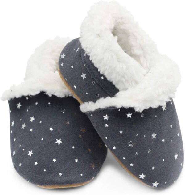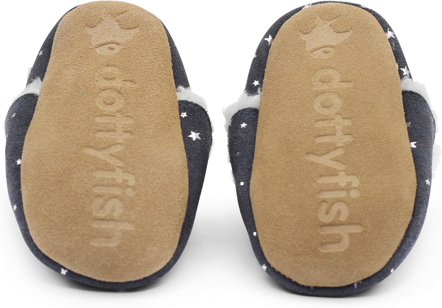 Dotty Fish Baby & Toddler Soft Suede Slippers – Non-Slip, Warm Fleece-Lined Shoes – Barefoot Feel – Sizes 0-6 Months to 5-6 Years – Boys & Girls