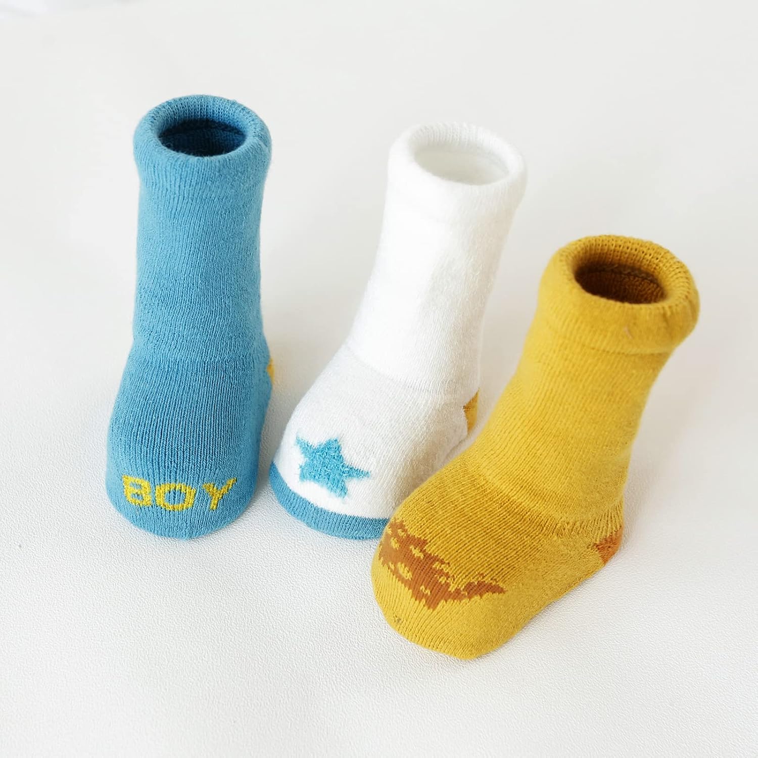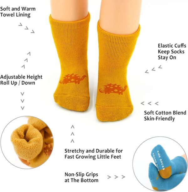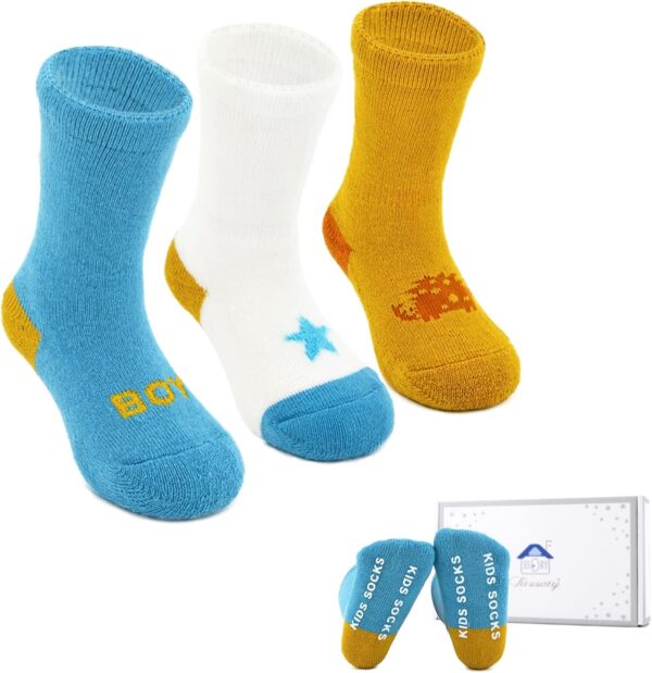 Fassory 3 Pairs Roll Up Warm Grip Socks Gift Set for 0-5 Years Infant Baby Toddler Kids Cute Anti-Slip Winter Cozy Cotton Socks for Children Boys Girls