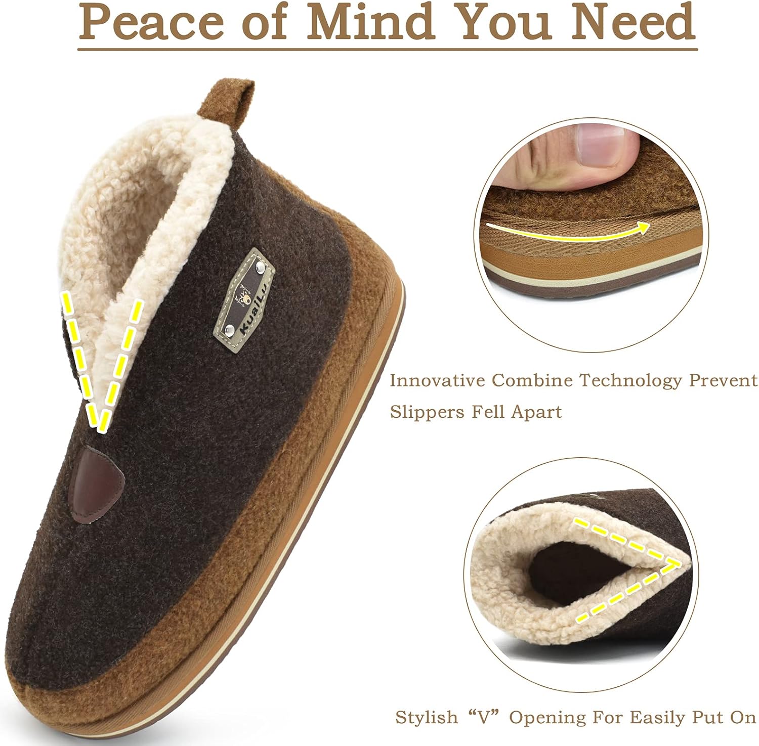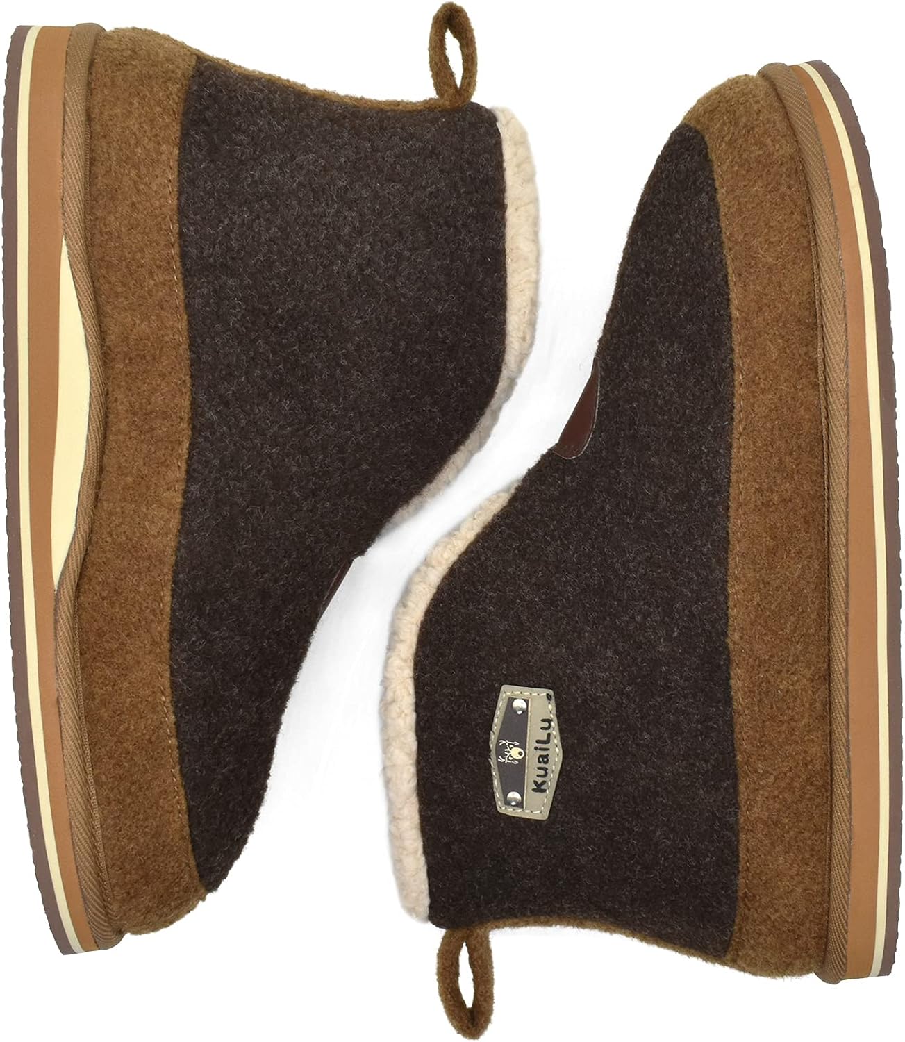 KuaiLu Mens Felt Winter Warm Boot Slippers Cosy Memory Foam Fleece Lined Bootie Slippers with Comfy Arch Support House Shoes Non-Slip Indoor Outdoor Hard Sole