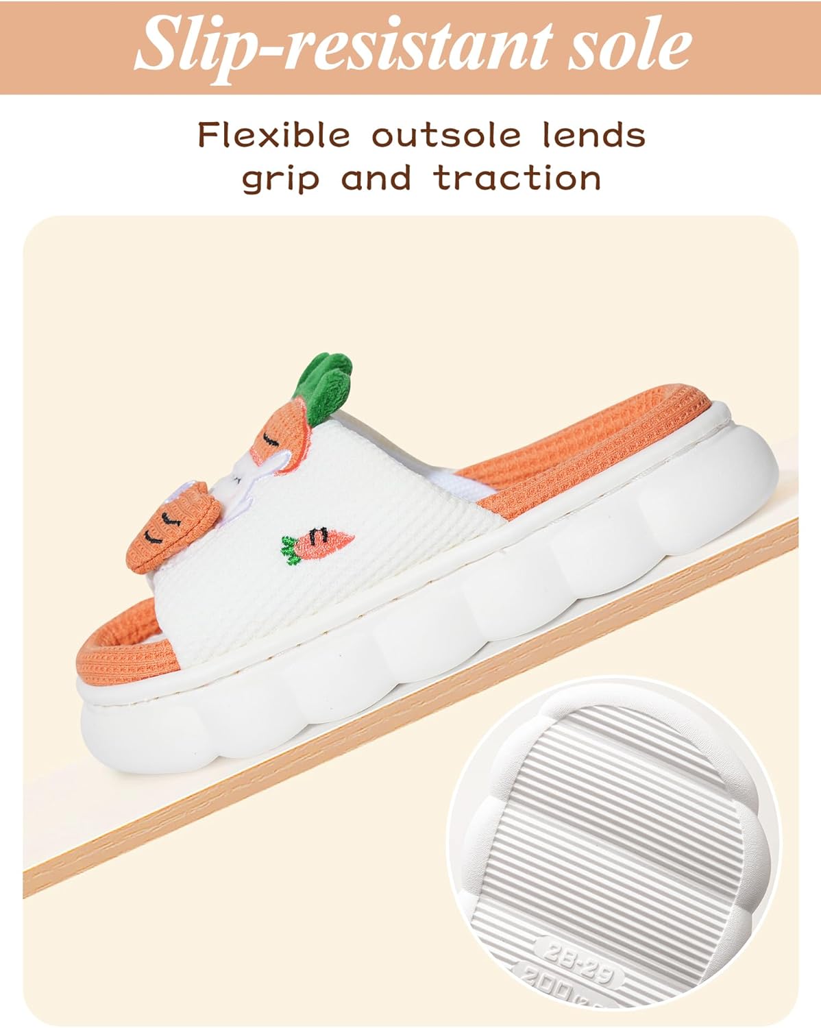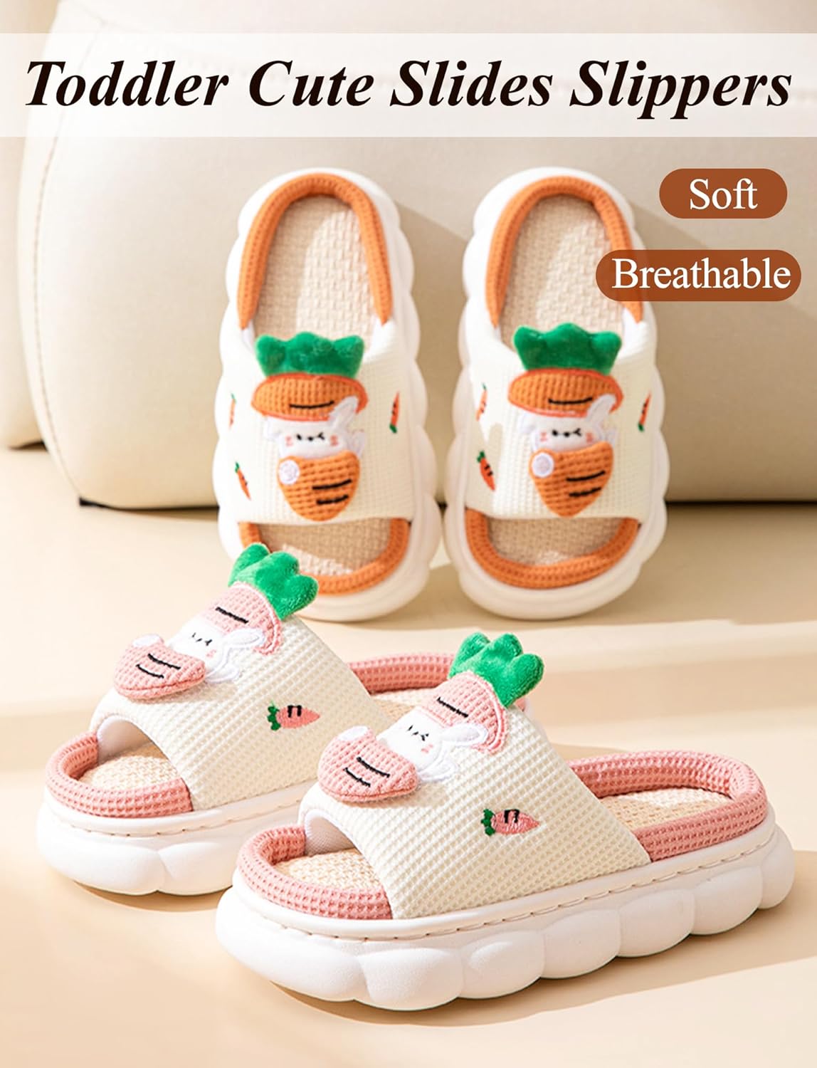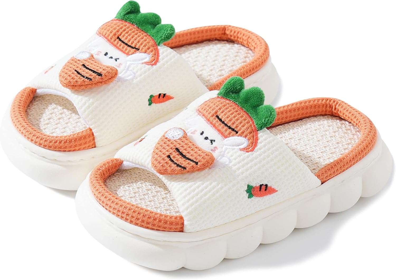 Maeau Toddler Kids Slippers Boys Girls House Slippers Cute Cartoon Animal Open Toe Shoes Linen Indoor Outdoor Slippers Non-Slip House Shoes