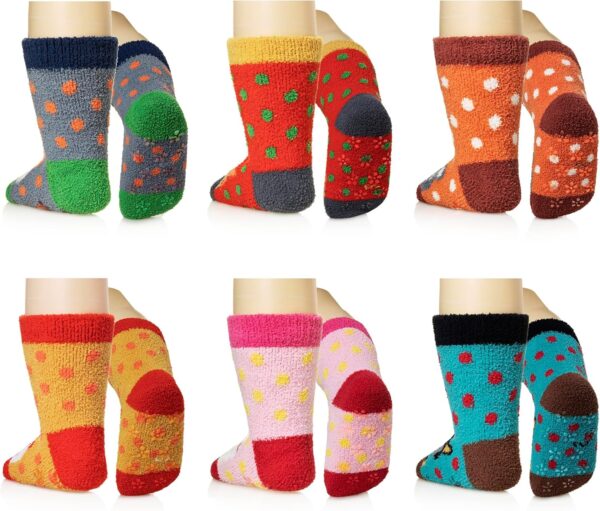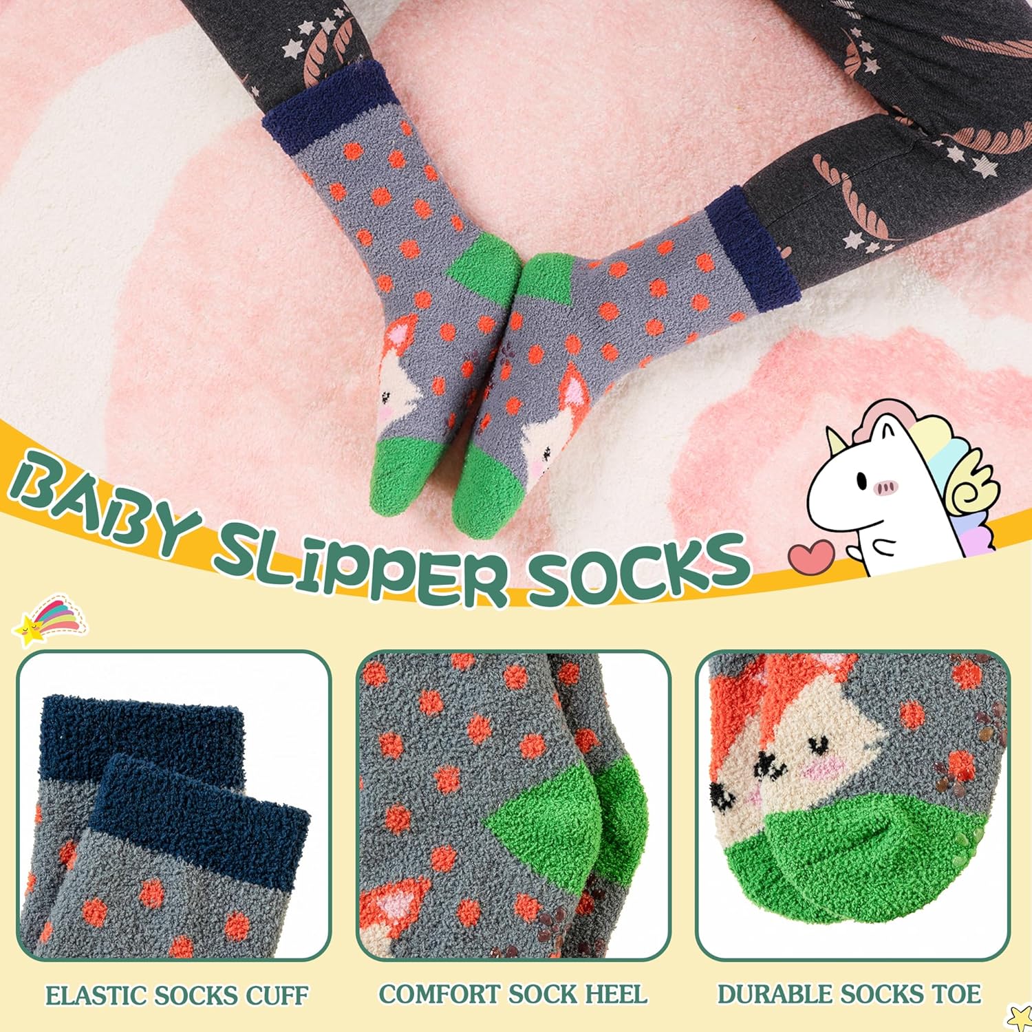 SEEYAN Baby Fluffy Grips Socks Toddler Non Slip Slipper Socks Kids Warm Winter Cozy Sleep Bed Socks For Newborn Boys Girls 0-5 Years