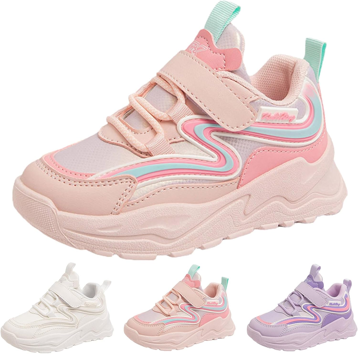 Boys Girls Sneakers Kids Sports Athletic Shoes Walking Shoes Little Kid/Big Kid Girls Sports Shoes Fashionable New Pattern Solid Color Casual Flat Bottom Thick Bottom Comfortable Hook Loop Shoes