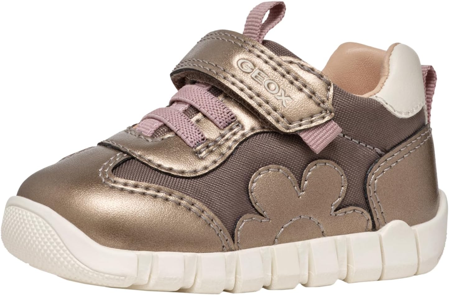 Iupidoo is a sporty first steps for baby girls DNA sports with a double Velcro closure, made of waxed leather and suede. Breathable, soft and very flexible, this model is perfect to accompany her on her first explorations. – The patented Geox systems ensure the breathability of the sole and the well-being of the foot. – The outer band with integrated Flexy System provides good flexibility. – Easy to wear for optimal comfort. – Reinforced toe and heel protect against bumps and impacts and ensure proper foot movement thanks to the ankle support. – Antibacterial insole – Non-toxic chrome-free leather insole. – Instant fit thanks to Velcro fastening. – Removable insole