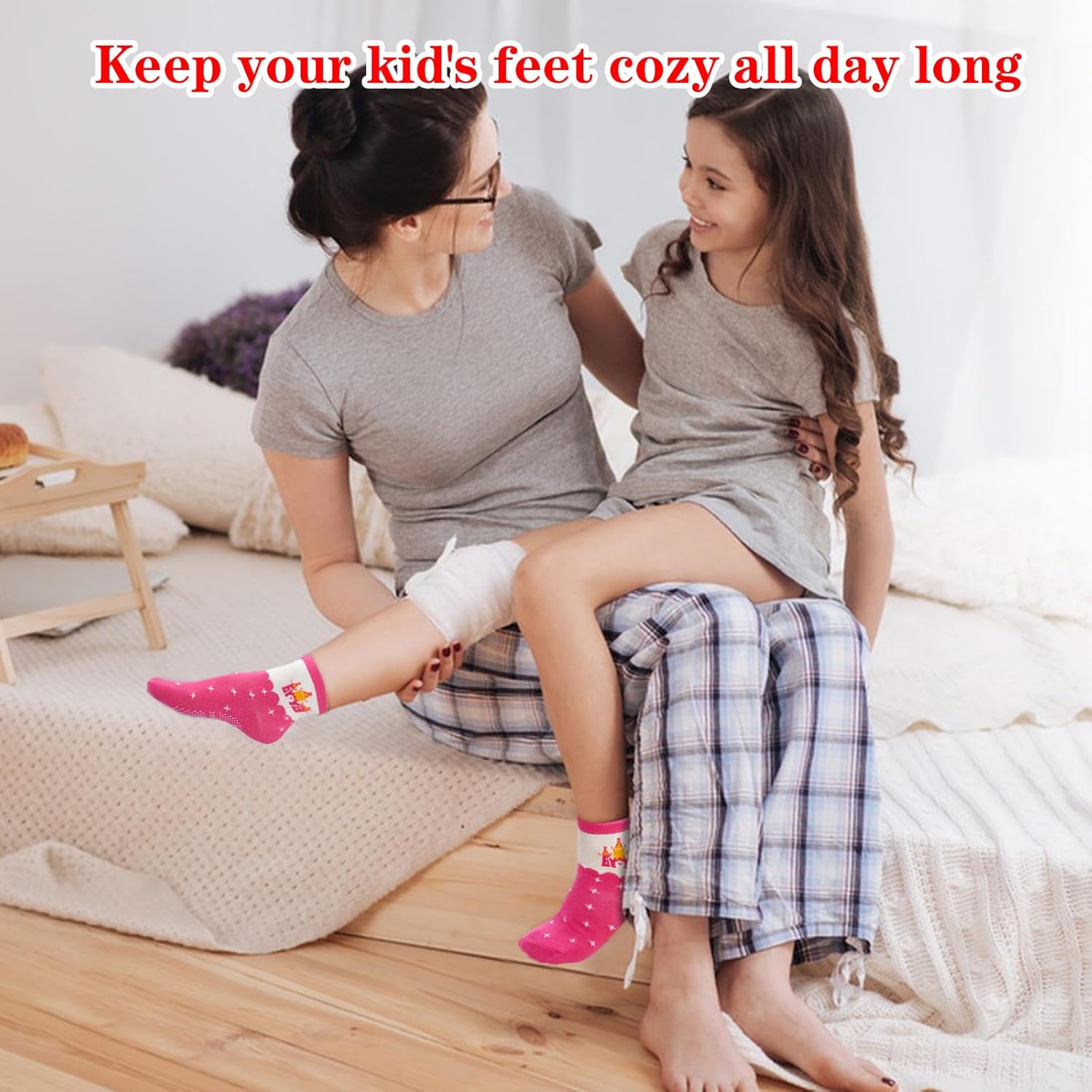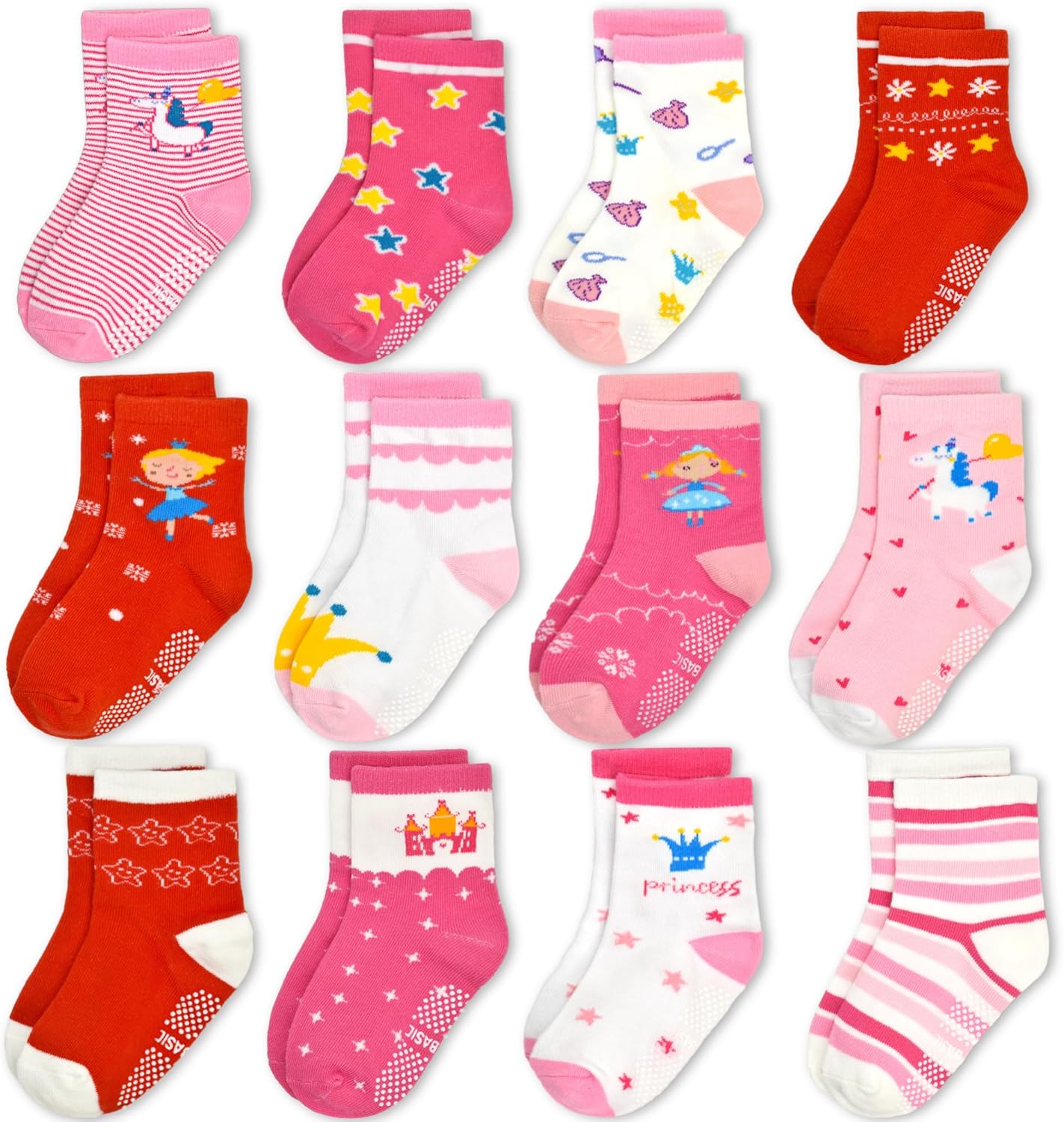 GRPSKCOS Toddler Girls Socks, 12 Pack Non Slip Crew Socks with Grips for 1-7 Years Kids