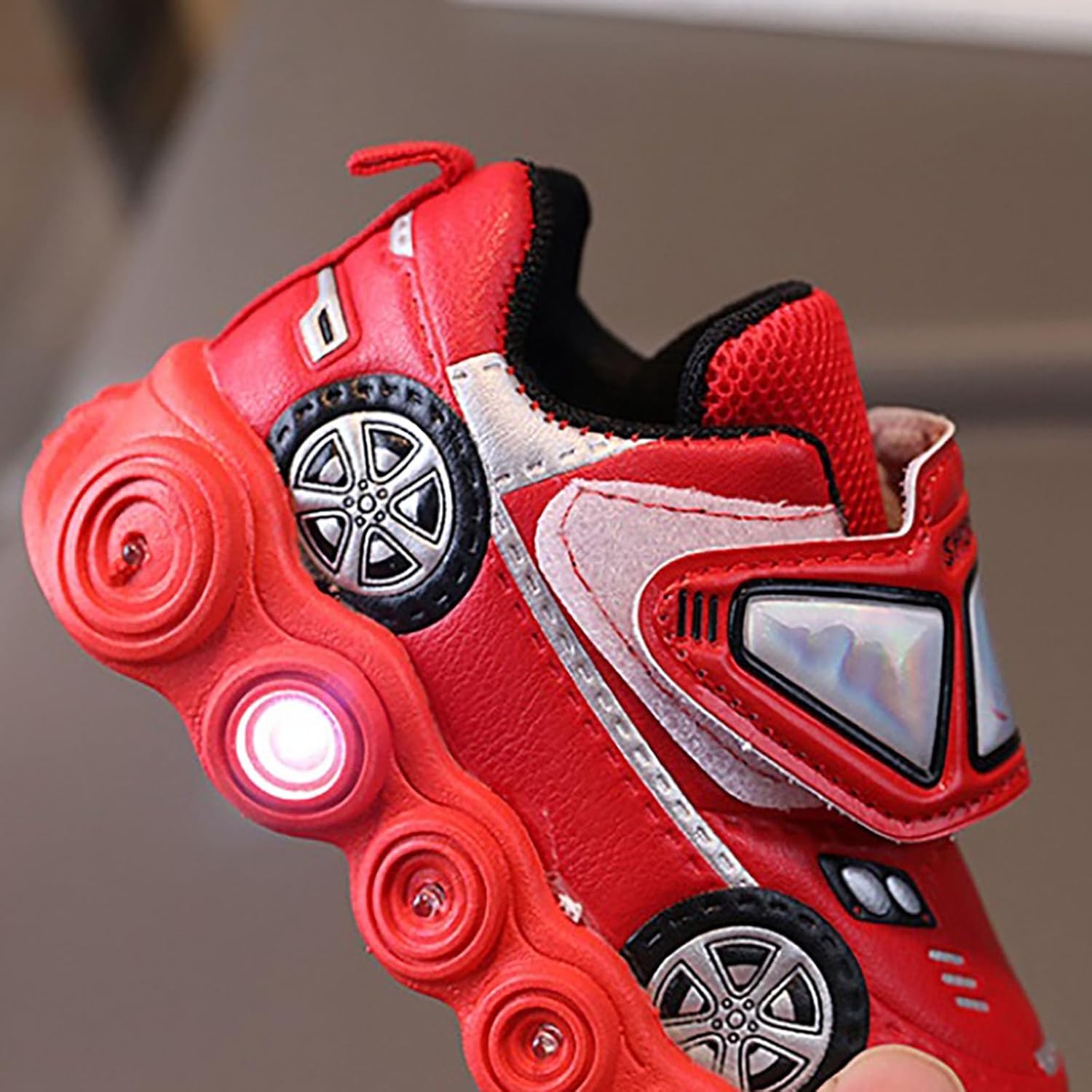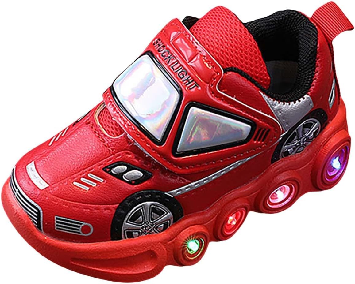 Light Up Toddler Boys Shoes Car Pattern LED Luminous Sport Sneaker Little Fashion Cute Soft Sole Toddler Athletic Shoes Non Slip Walking Shoes Low Top Casual Sneaker