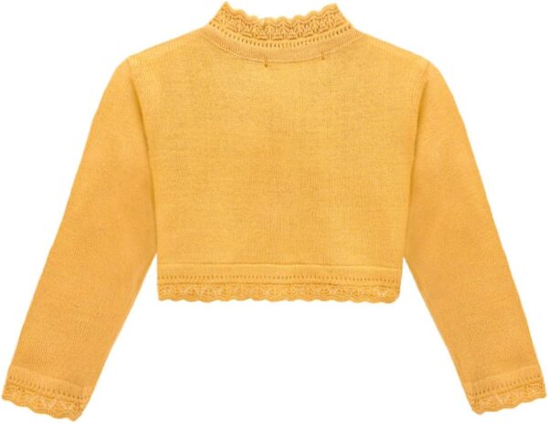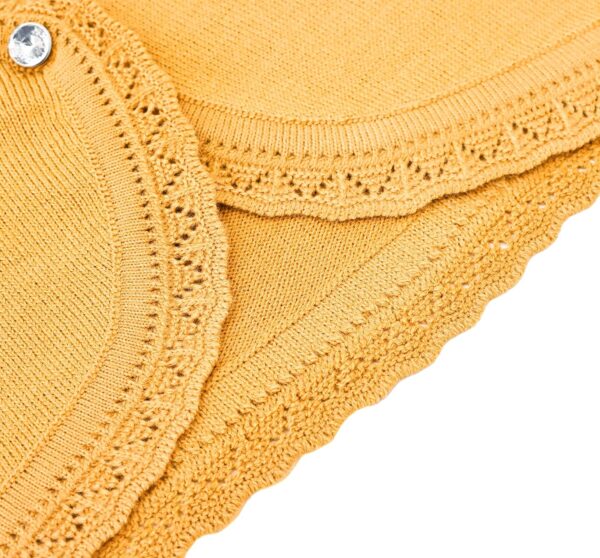 This knitted bolero cardigan is breathable and ultra-soft, providing maximum comfort for your little one. Made from 100% acrylic, it offers both durability and a cozy feel, making it perfect for special occasions and everyday wear.
