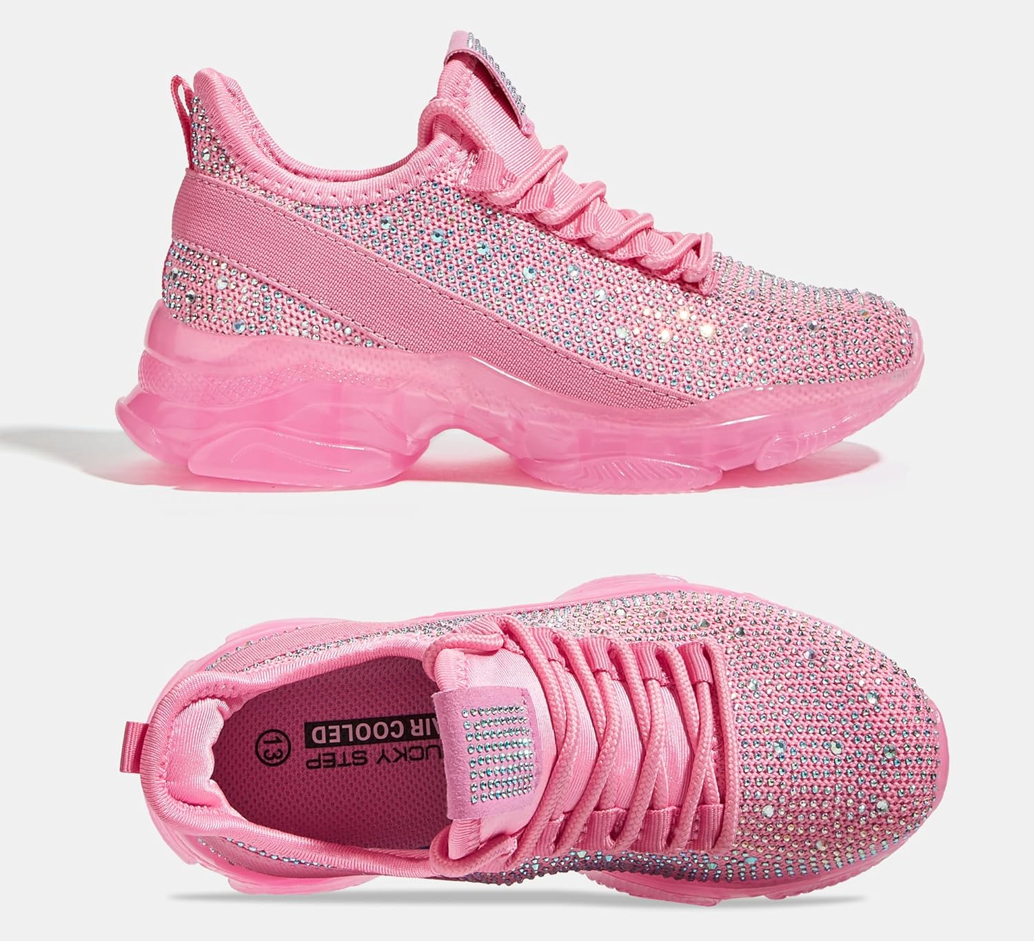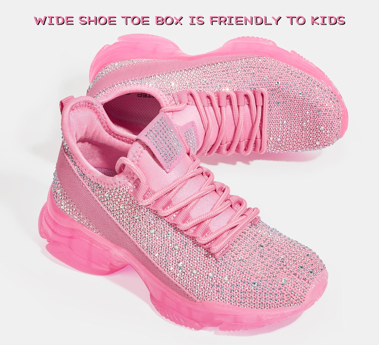 Lucky Step Girls Rhinestone Slip On Sneakers Kids Sparkly Lightweight Tennis School Knit Jelly Sole Glitter Walking Shoes Toddler