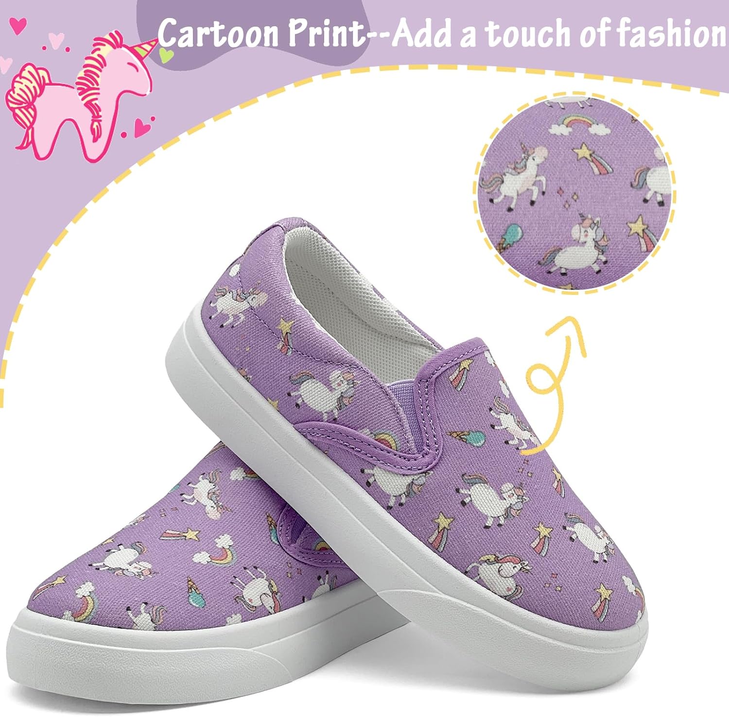 maxvinci Kids Slip On Canvas Shoes Girls Boys Casual Trainers Breathable Flat Sneakers Pumps Plimsoles with Cartoon Pattern Print