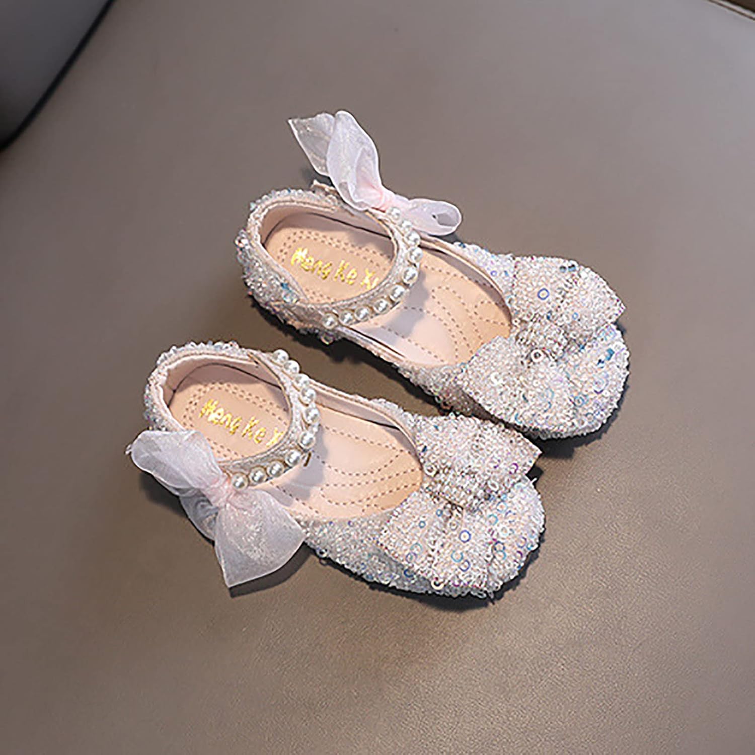 ROLAQDK Girls Shoes Size 5 Big Girls Toddler Shoes for Girls Girls Sandals Crystal Baby Infant Bling Kids Shoes Princess Shoes Pearl Shoes Dancing Single Shoes Baby Girl Shoes 3-6 Months