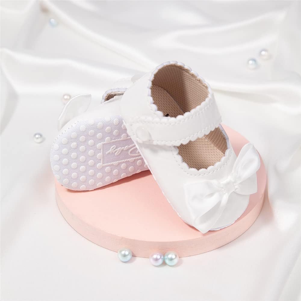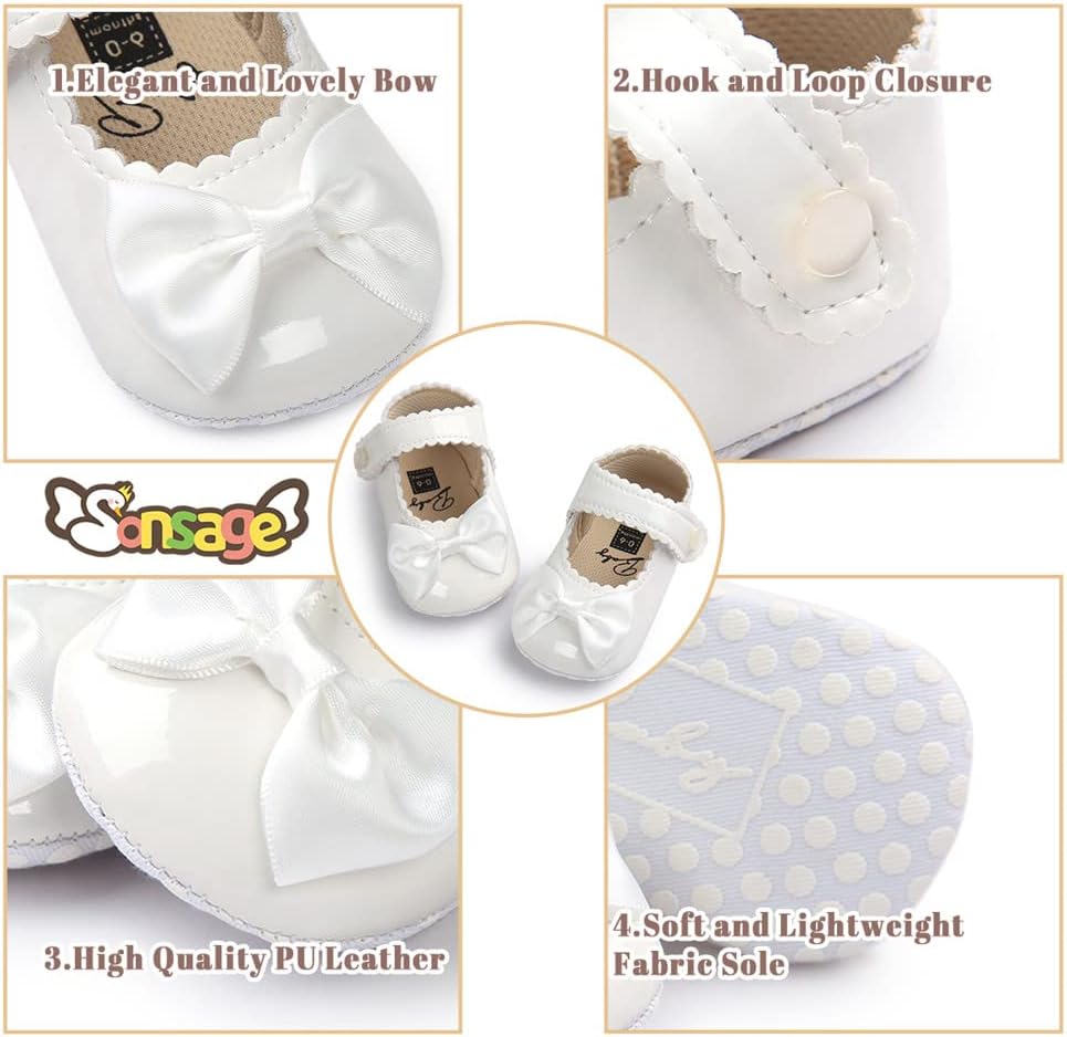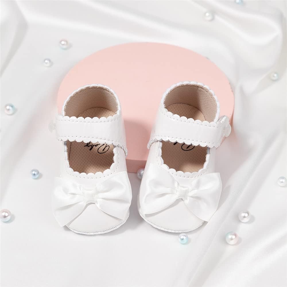 Sonsage Infant Baby Girls Bowknot Mary Jane Toddler PU Leather Soft Sole Princess Wedding Dress First Walking Flats Prewalker Newborn Ballet Shoes
