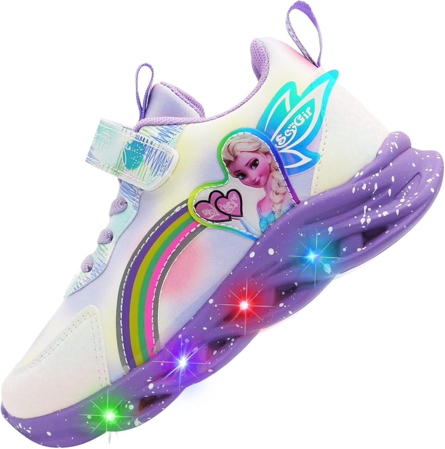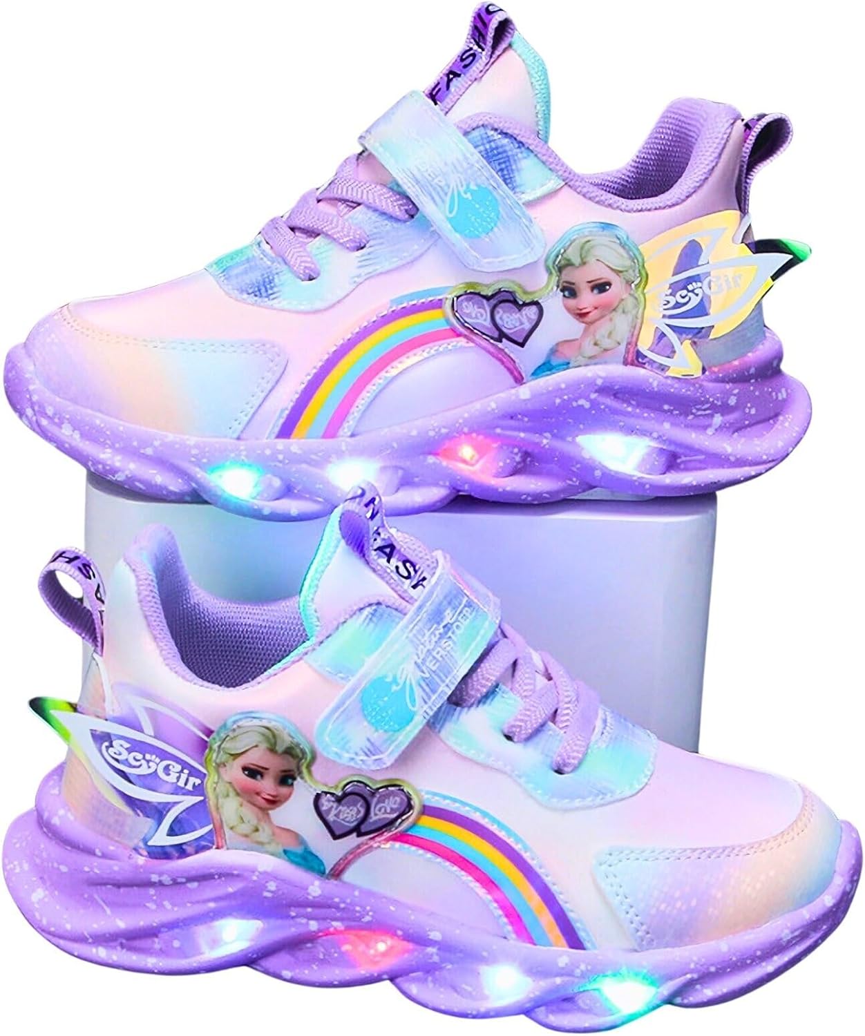 Vorkhuaeri Princess Sneakers for Girls Kids Trainers Light Up Shoes Dress Up Elsashoes Baby Toddler Sneakers Birthday Xmas