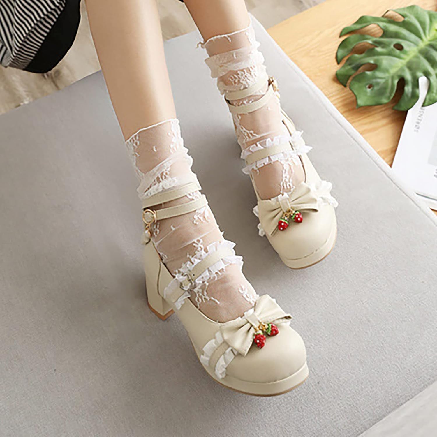 WWricotta Big Girls Gorgeous Shoes Lace Up Pu Material Bow Decorated Thick Heels High Heels Party Wedding Prom Shoes Slippers Baby Girl Kids Slippers Size 12 Girls