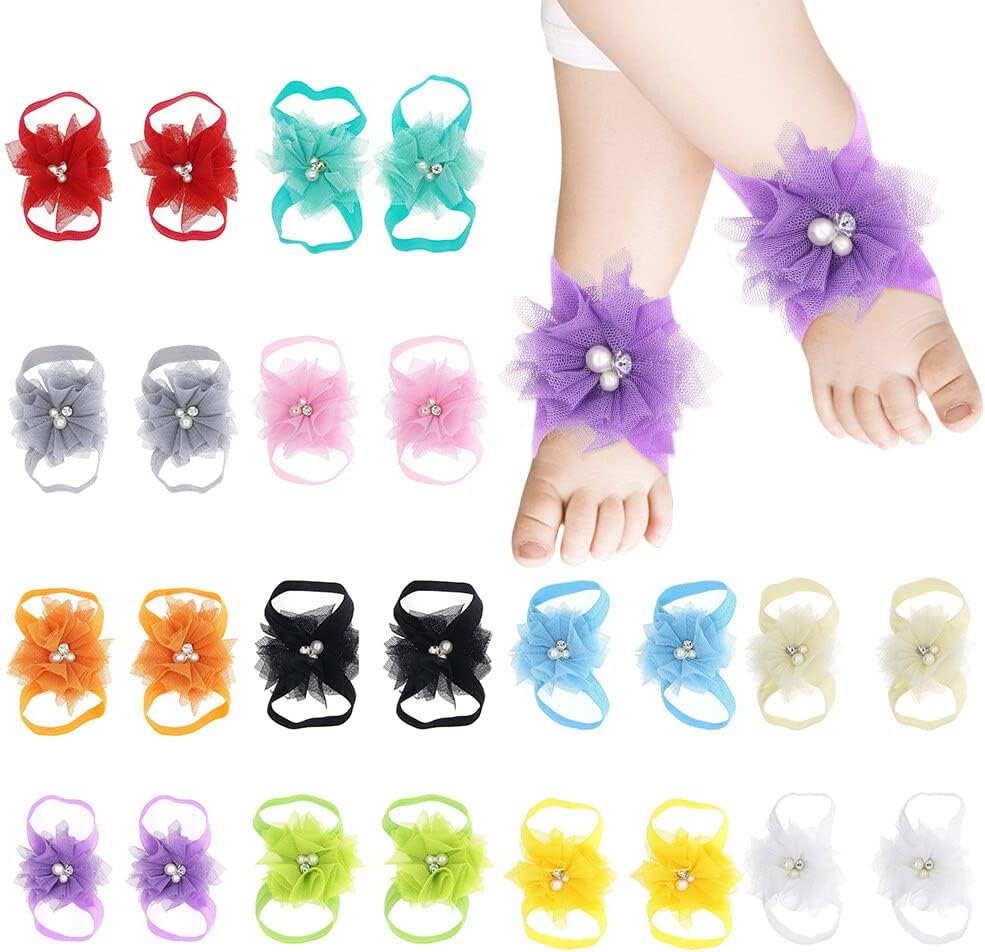 CUTE DESIGN: The set includes 12 pairs of baby barefoot sandals with bow in 12 different colors. Wear them to make your baby look sweet, lively and elegant.