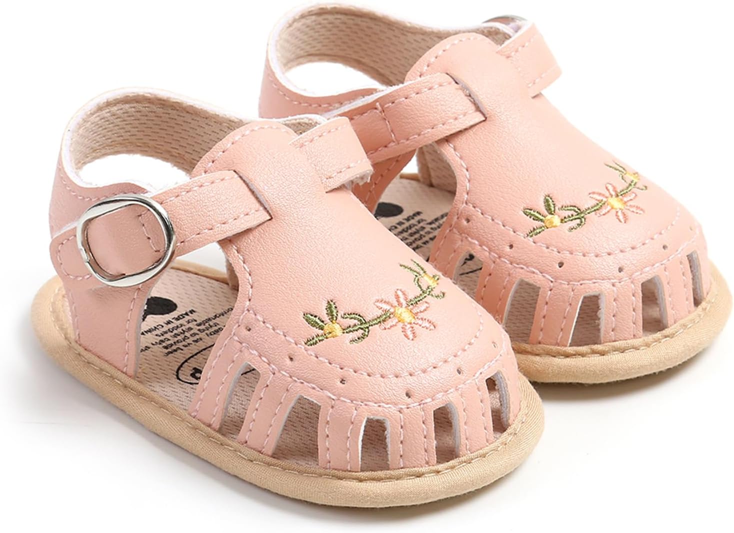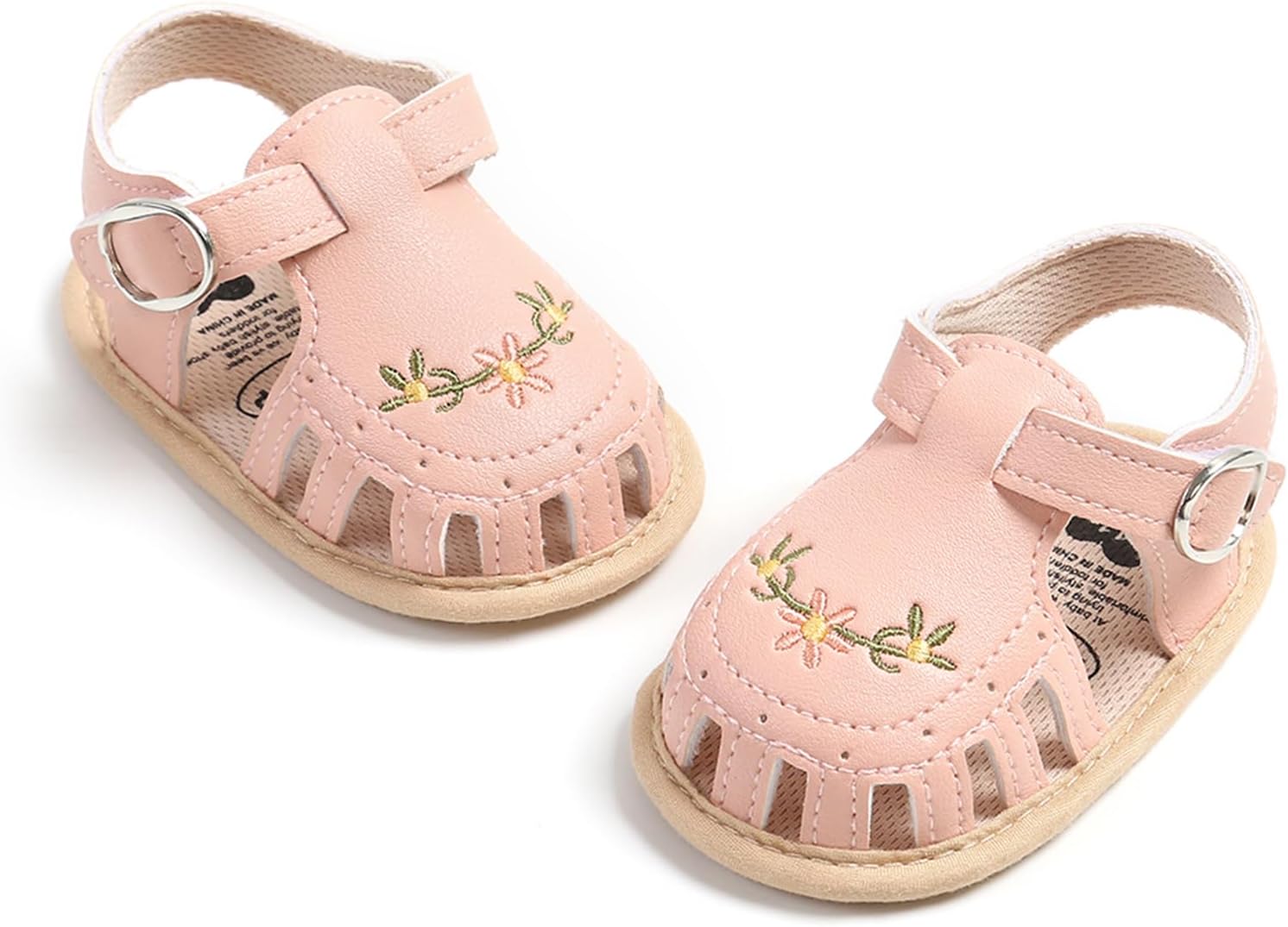 Baby Girl Sandals PU Leather Non-slip Embroidery Flower Summer Flats Toddler Shoes for Casual Daily