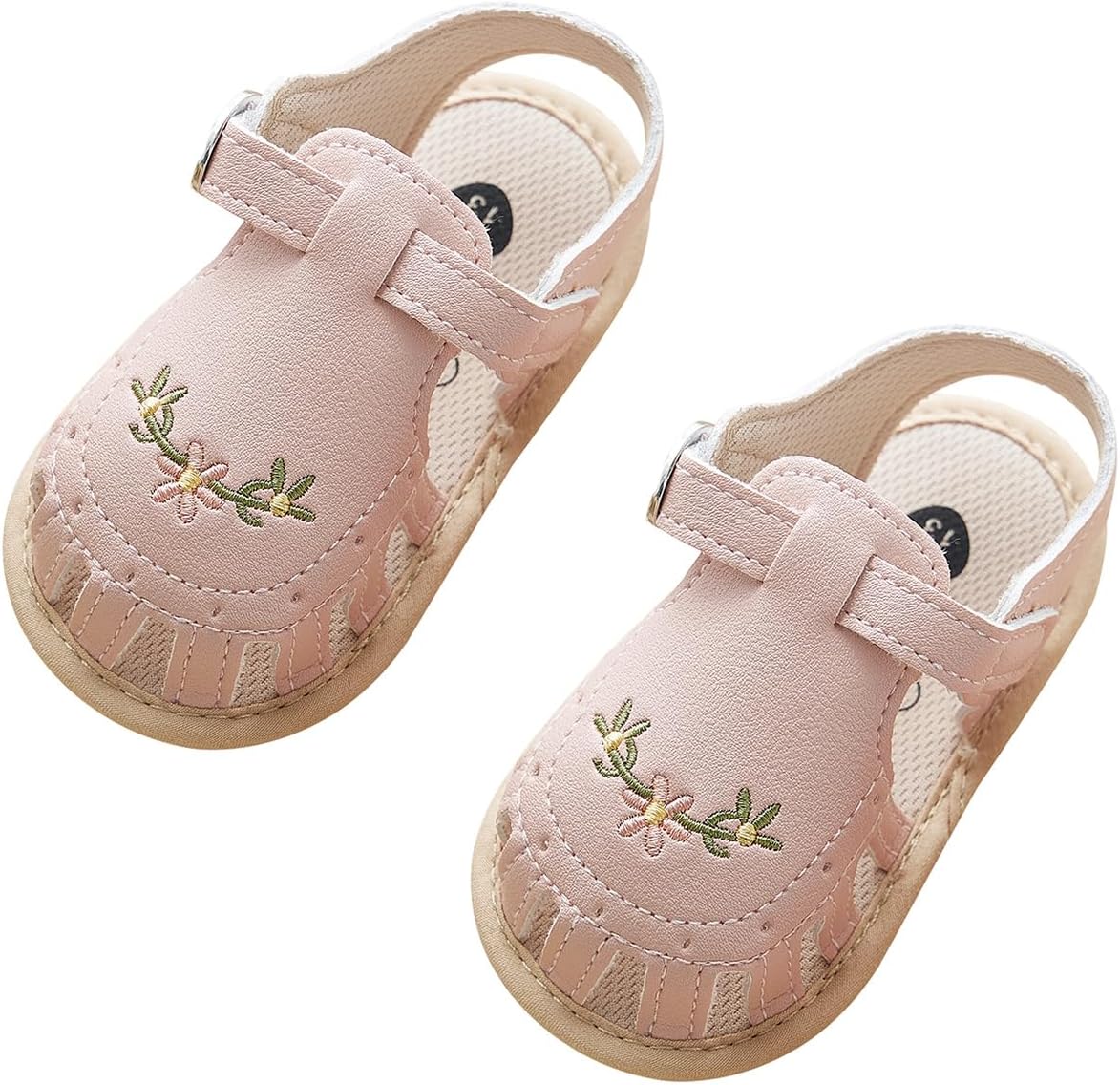 Baby Girl Sandals, PU Leather Non-slip Embroidery Flower Summer Flats Toddler Shoes for Casual Daily