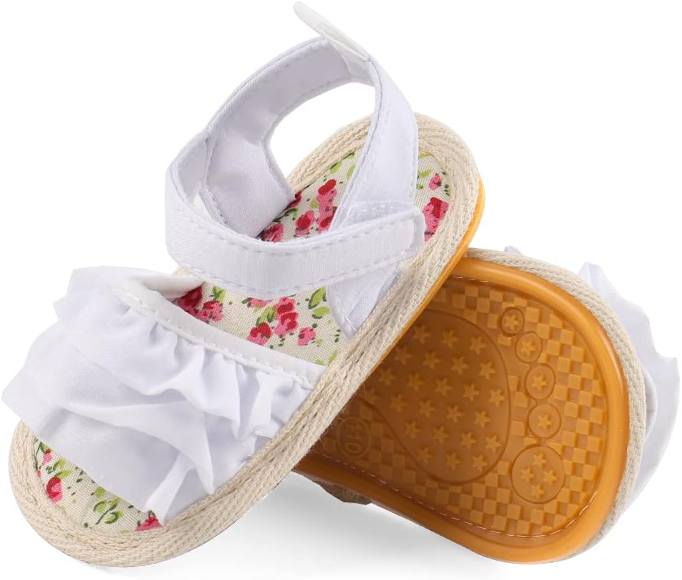 MASOCIO Baby Girls Open Toe Sandals Infant Toddler Summer Flat Anti Slip First Walking Shoes