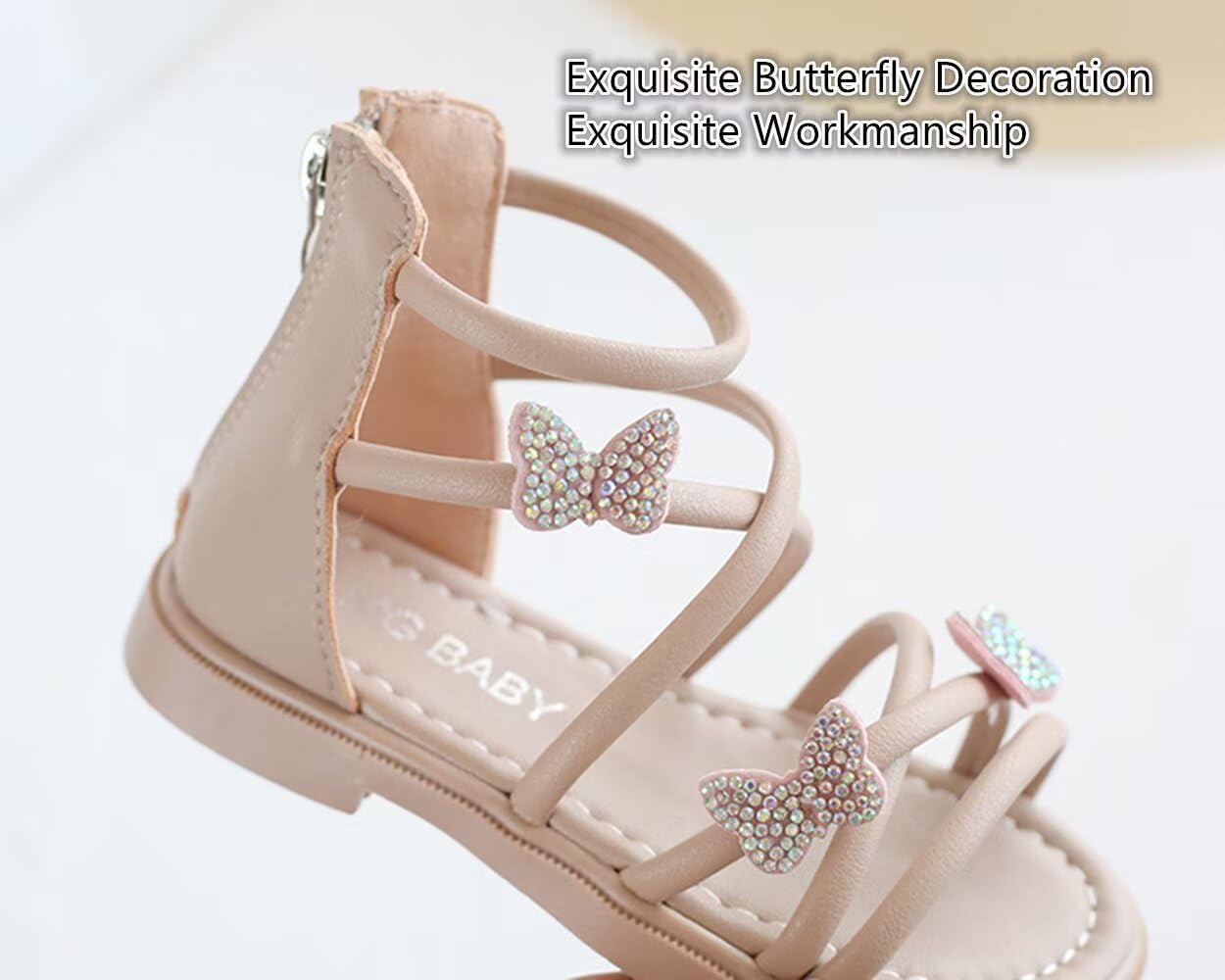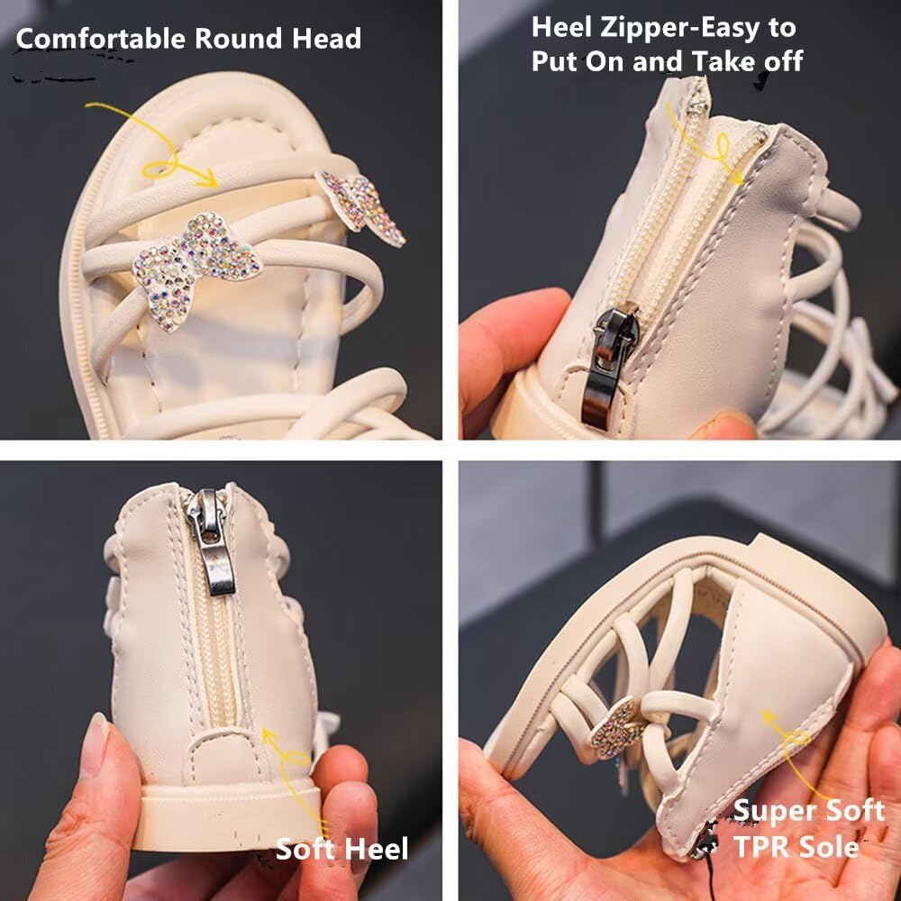 BWGHBH Girls Gladiator Sandals Summer Princess Butterfly Strappy Dress Flats Shoe with Back Zipper For Toddler/Little Kid