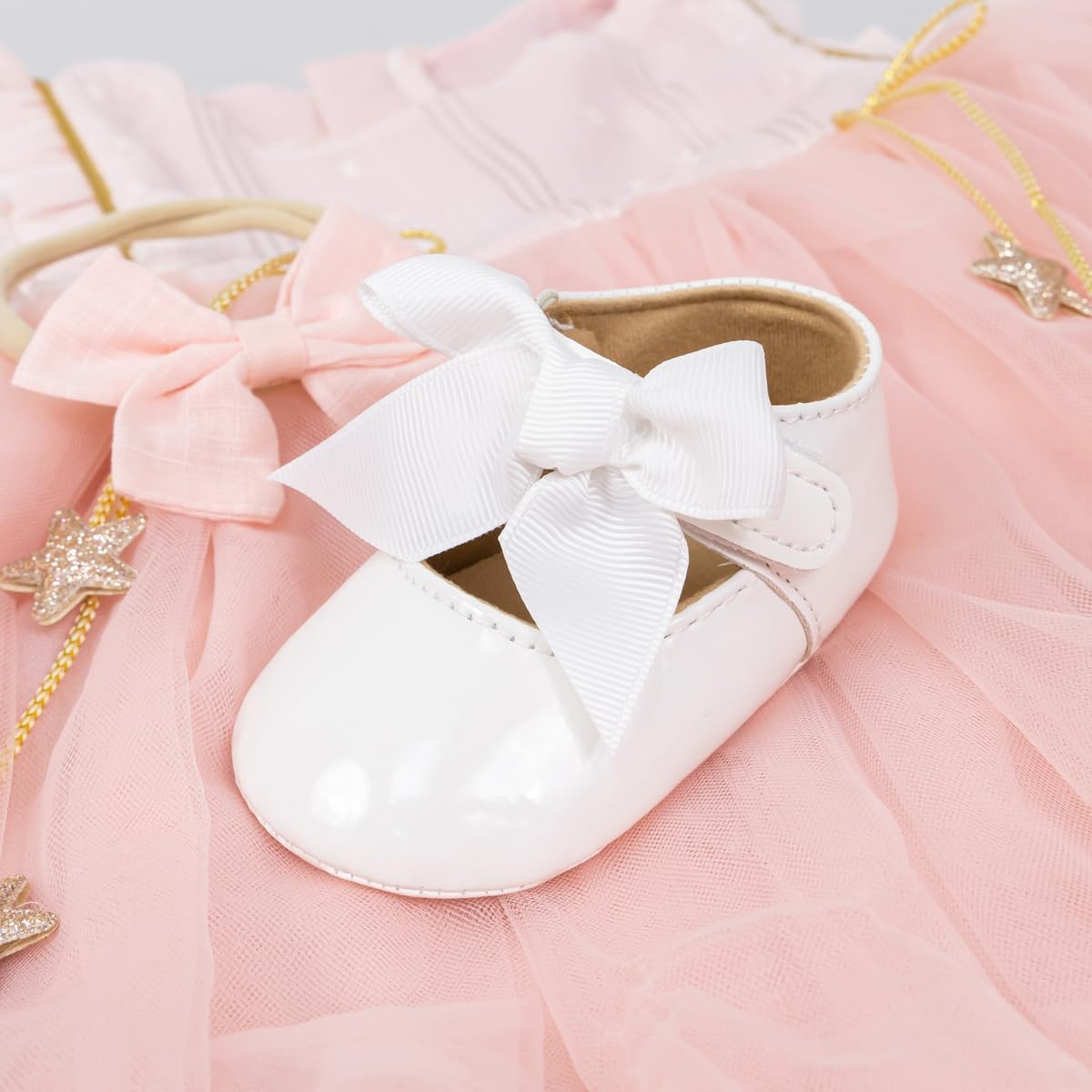 CENCIRILY Baby Girl Mary Jane Shoes Anti-Slip First Walking Bowknot Soft Sole Princess Wedding Dress Flats for 0-18 Month