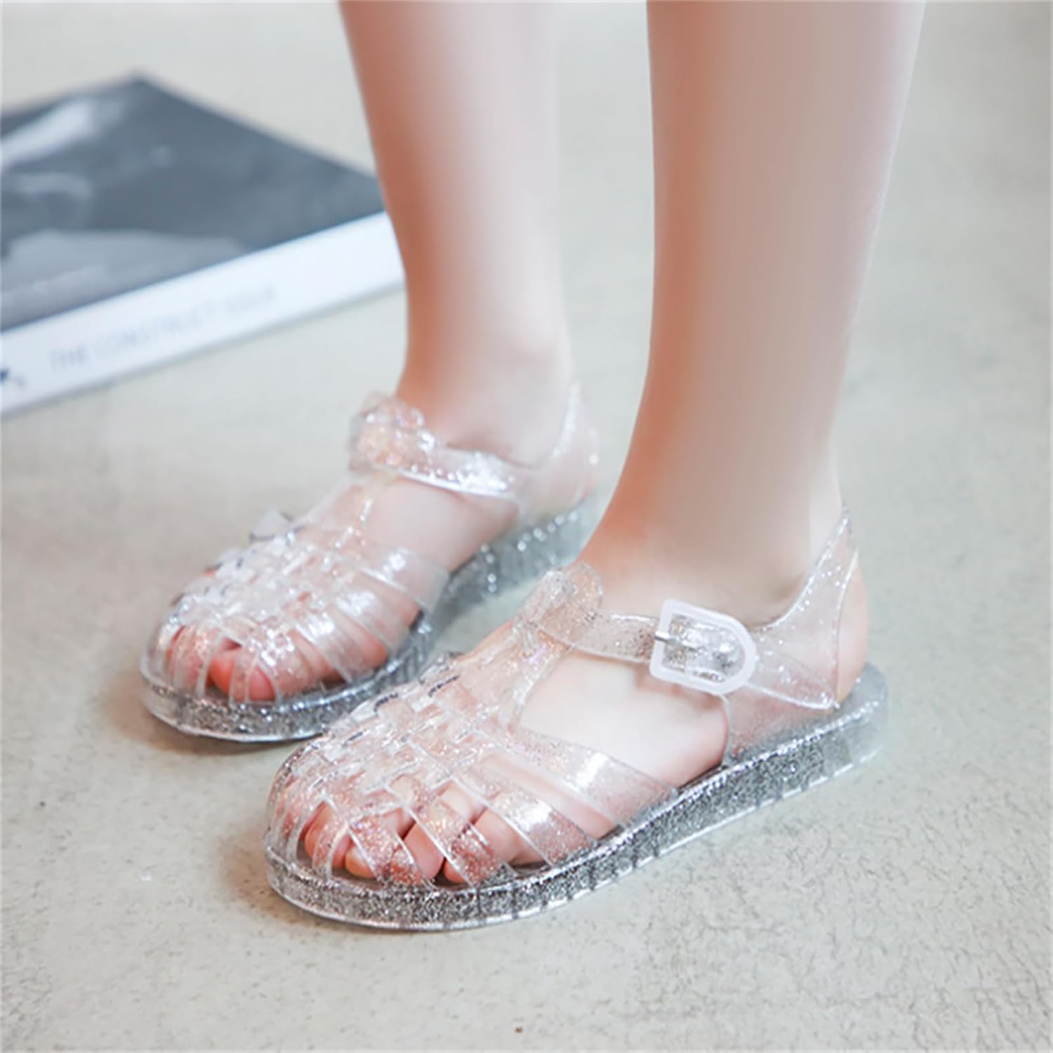 CENCIRILY Toddler Girls Jelly Sandals Soft Rubber Sole Closed Toe Glitter Sparkle Summer Beach Holiday Princess Dress Up Shoes