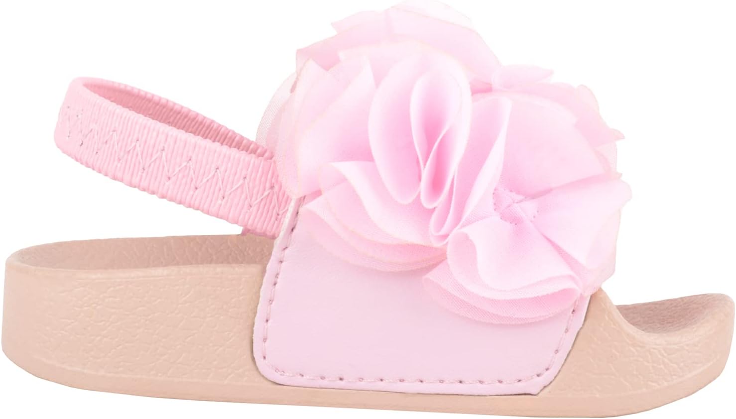 Childrens Kids Girls Easy Slip On Open Toe Elasticated Summer Holiday Sandal with Embroidered Flower