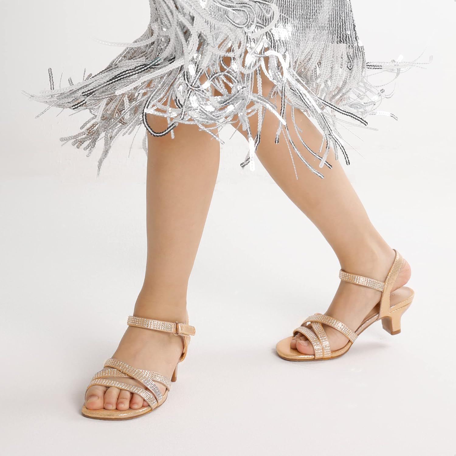 Fashion Thirsty Girls Kids Childrens Low Block Heels Diamante Bow Wedding Party Shoes Bridesmaid Evening Occasion Comfort Heeled Glitter Strappy Sandals Dance Shoes