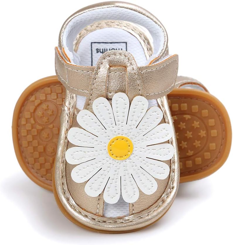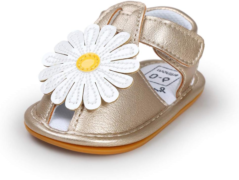 FANSU Summer Baby Sandals, Simple Fower Style Comfortable Toddler Princess Infant Baby Sandals Newborn Shoes for 0-18 Months Anti-Slip Soft Sole Velcro First Walking Shoes (11cm / 3-6 month,Gold)