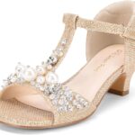 FOGOIN Girls Sandals Party Shoes Low Heels Open Toe Princess Sandal Ankle Strap Dress up Glitter Wedding Shoe for Little Big Kid Summer
