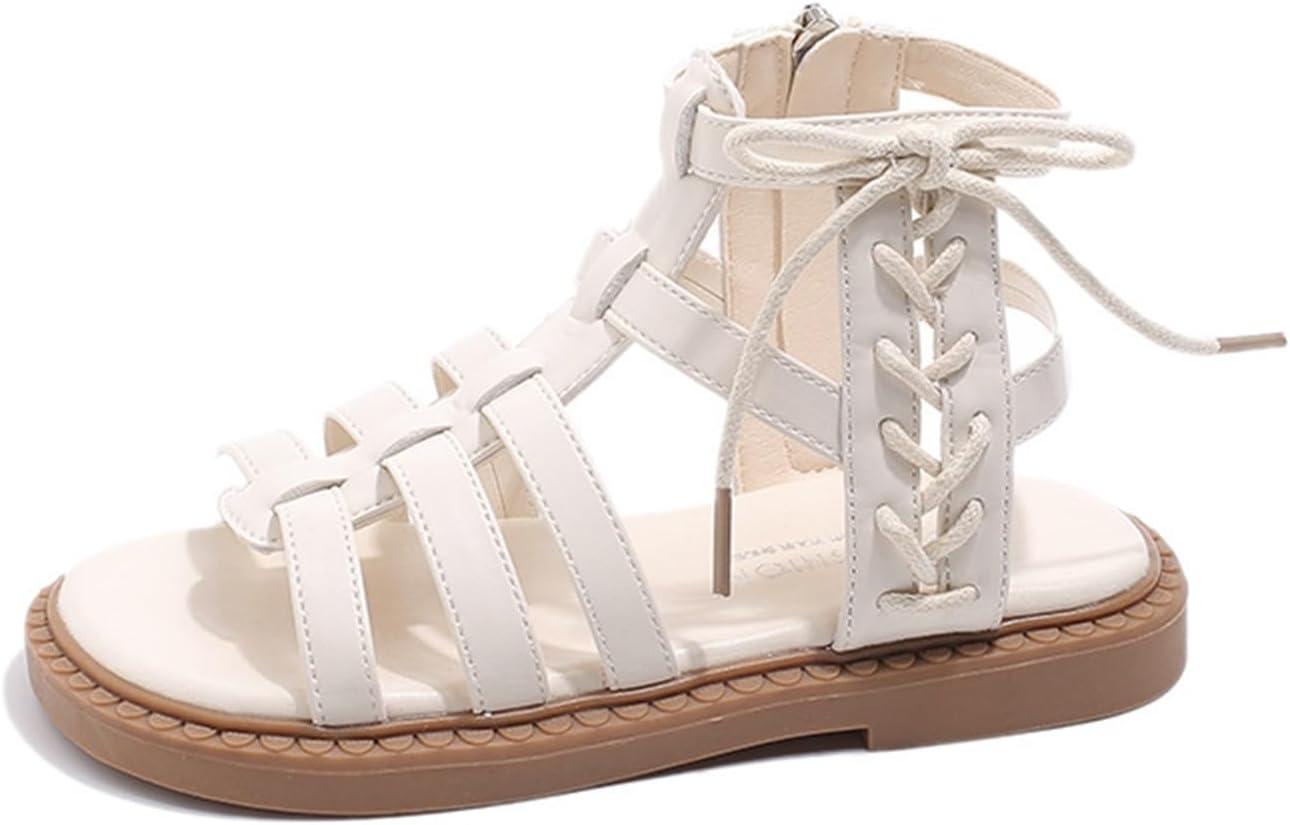 Girls’ High Top Sandals Summer 𝐆ladiator Girls’ Sandals Open Toe 𝐂𝗿oss Lace Shoes Zipper Casual Flat Sandals With Strap Sandals Retro Sandals Casual Sandals