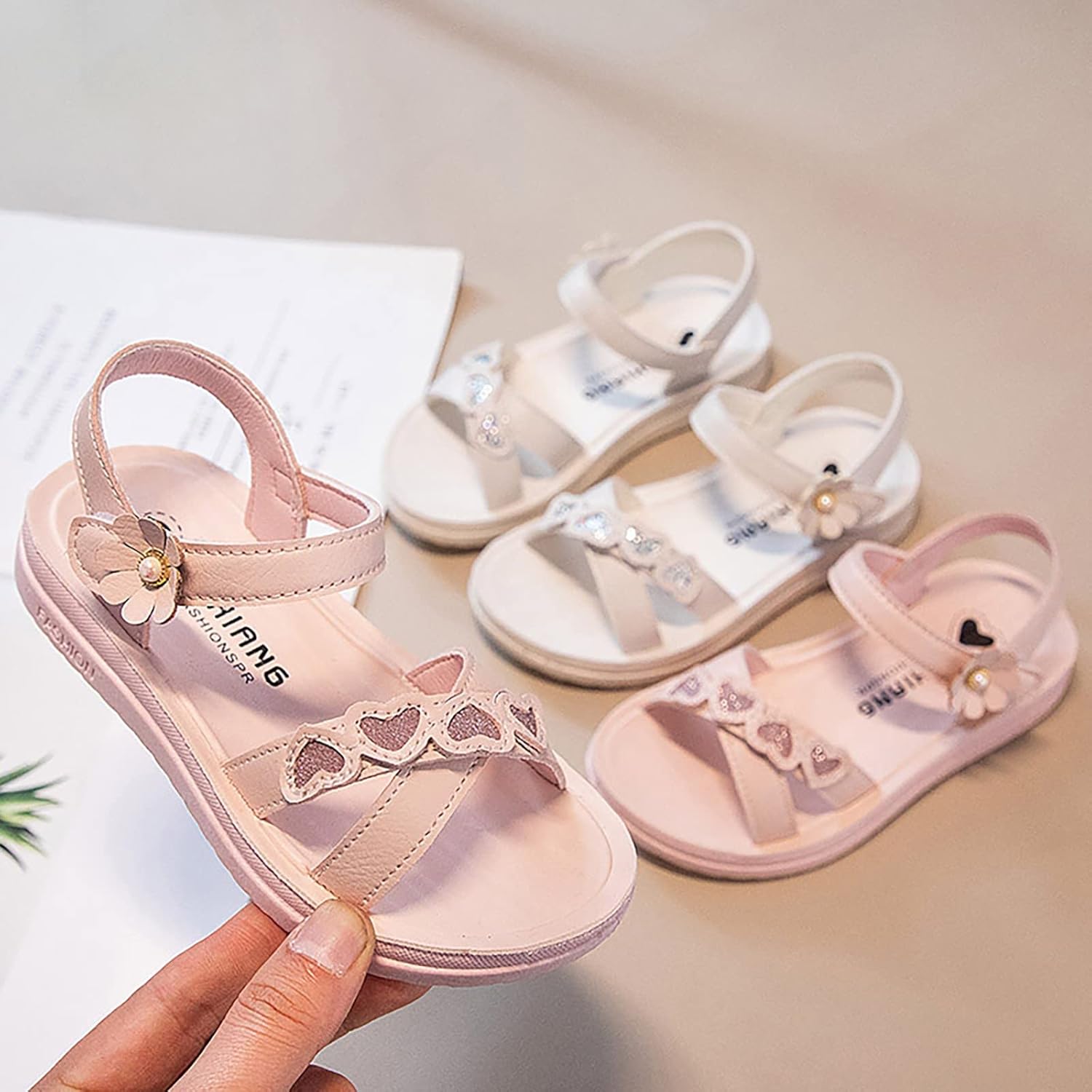 Girls Kids Leather Soft Sandals Strap Flat Non Slip Foam Wide Flower Shoes Baby Childrens Summer Outdoor Water Shoes