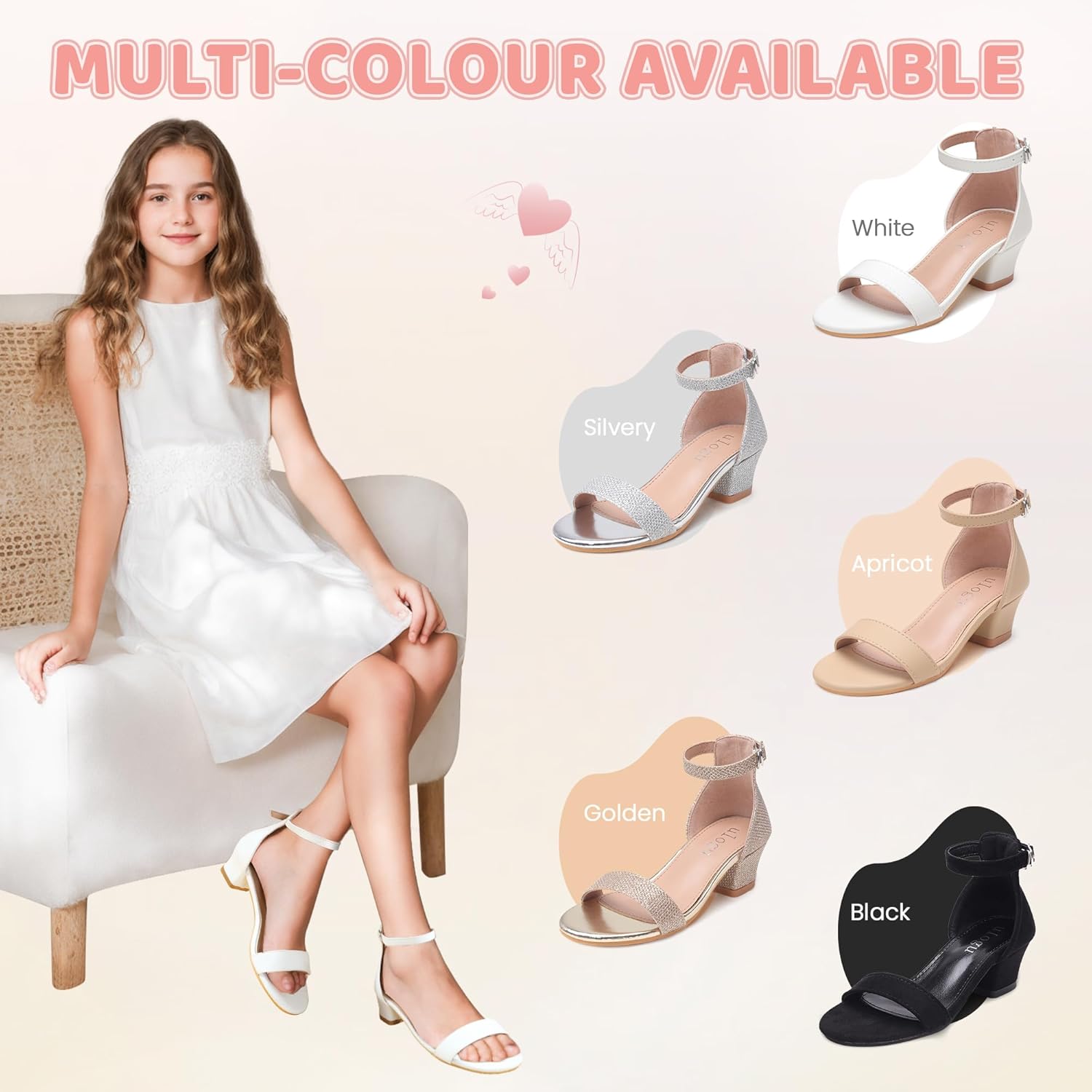 Girls Sandals Party Shoes Low Heels Open Toe Princess Sandal Ankle Strap Dress up Glitter Wedding Shoe for Little Big Kid Summer