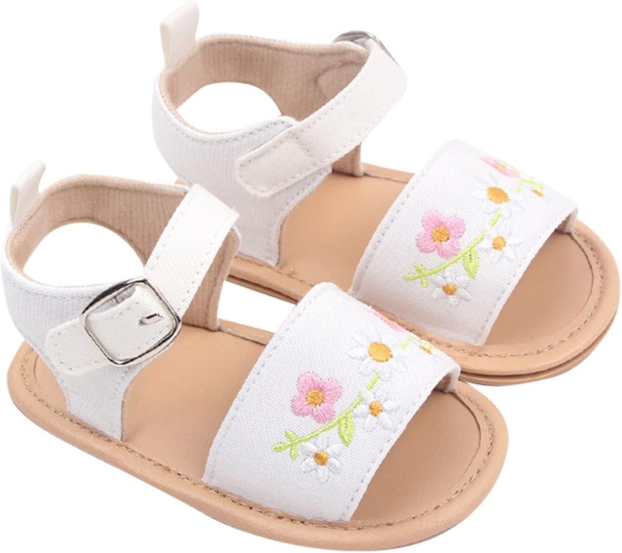 Infant Toddler Boys Girls Sandals Baby Walking Shoes Soft Soled Flower Embroidered Baby Shoes Breathable Sandals Non Slip Summer Casual Sandals