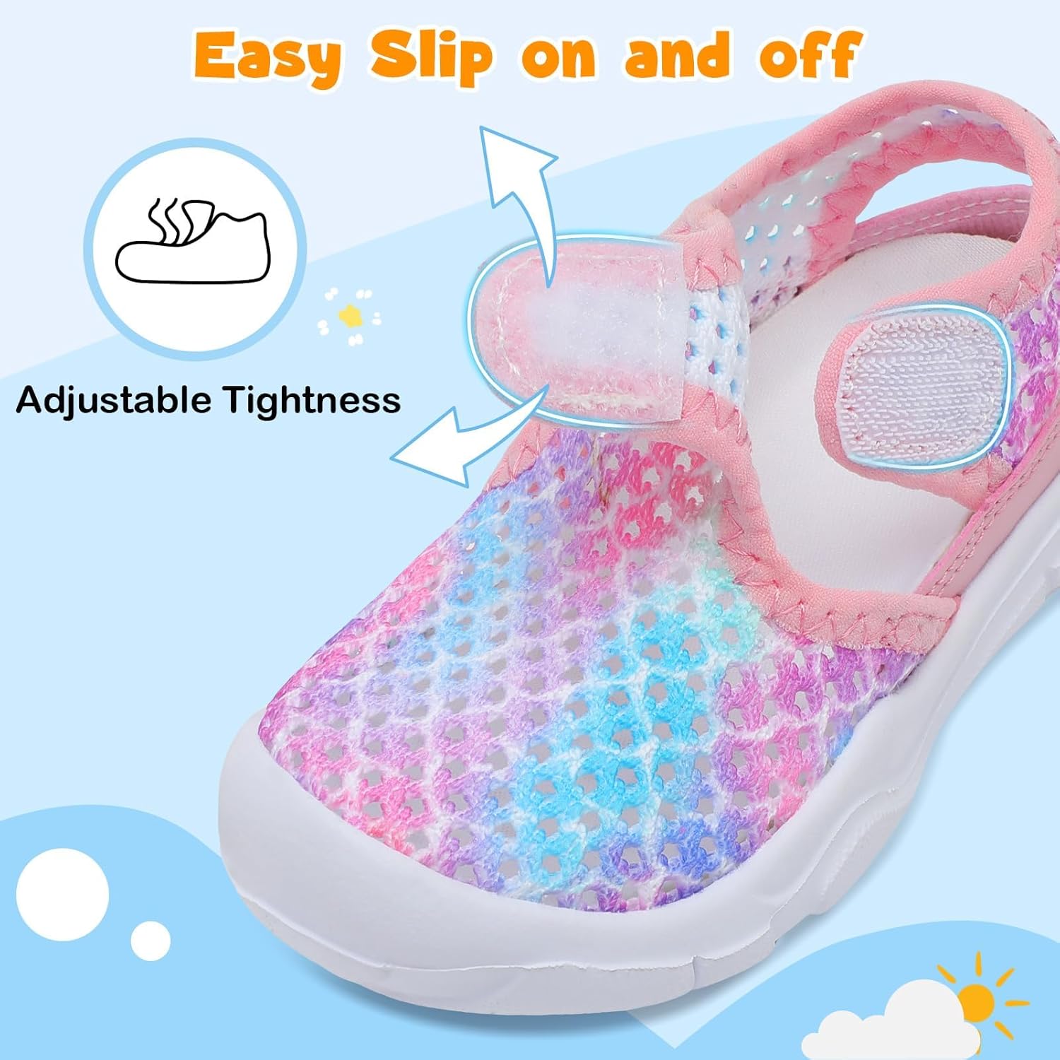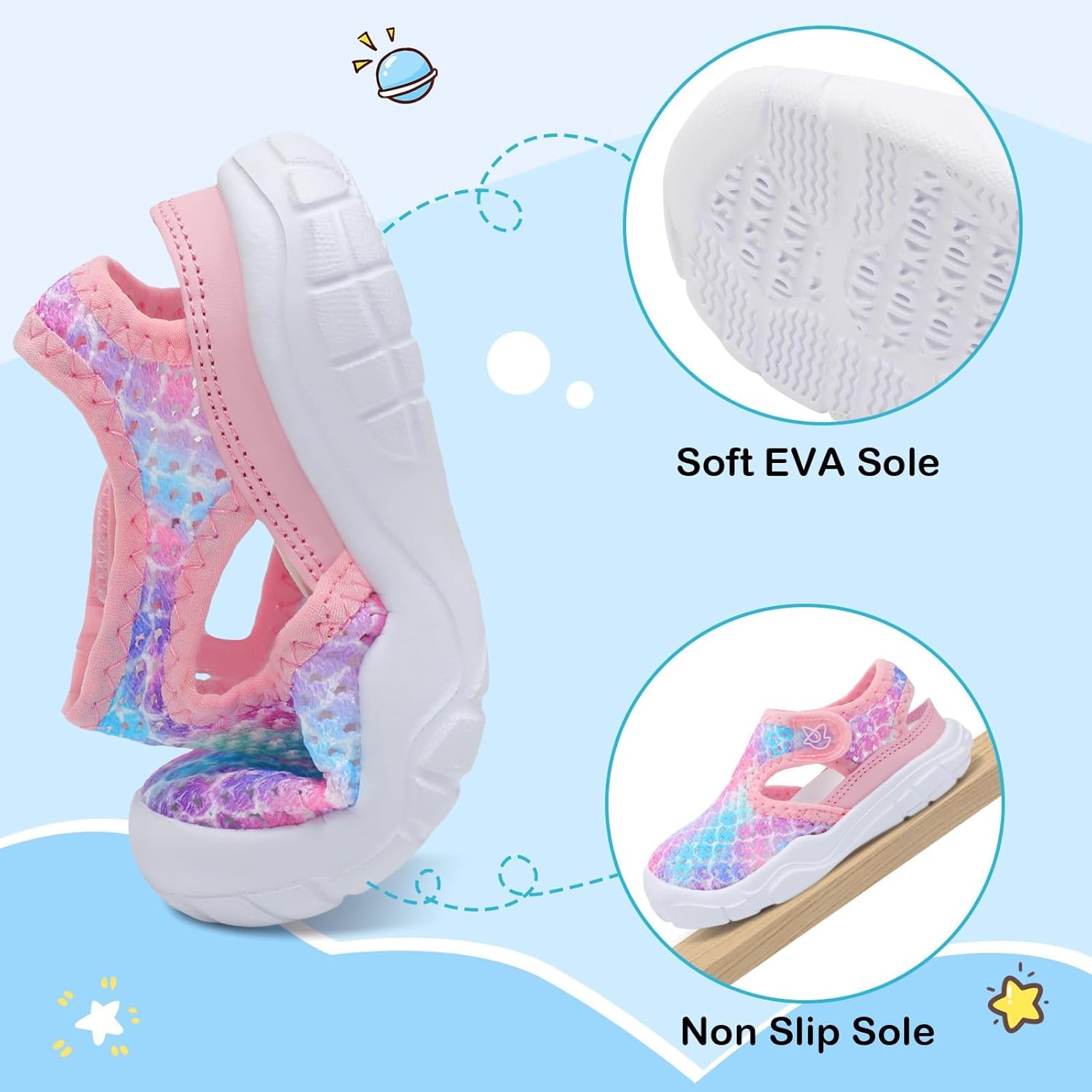 Toddler sandals upper with ultra lightweight knit fabric for quick drying and breathability ensures your kid‘s feet move freely and keep dry.
