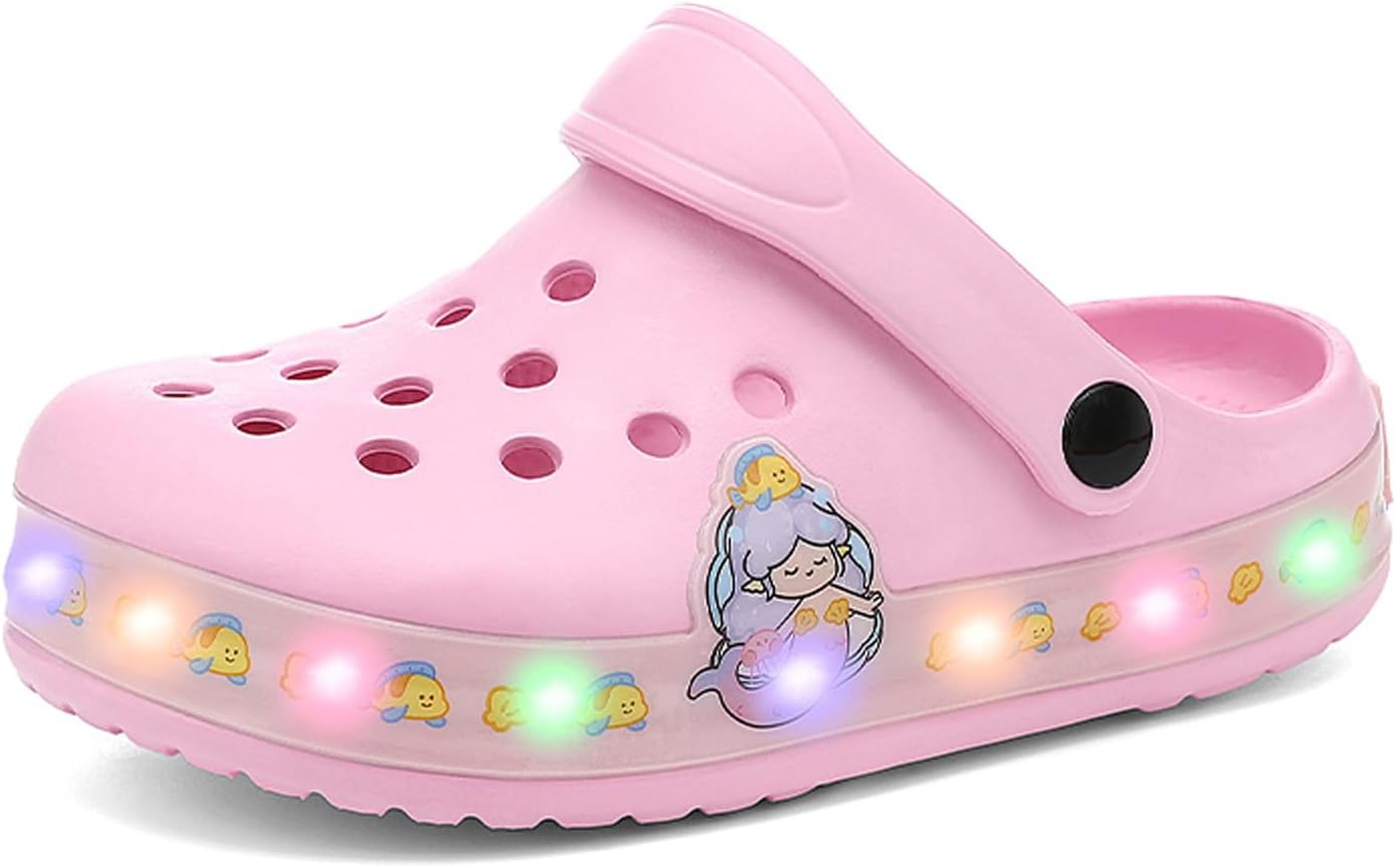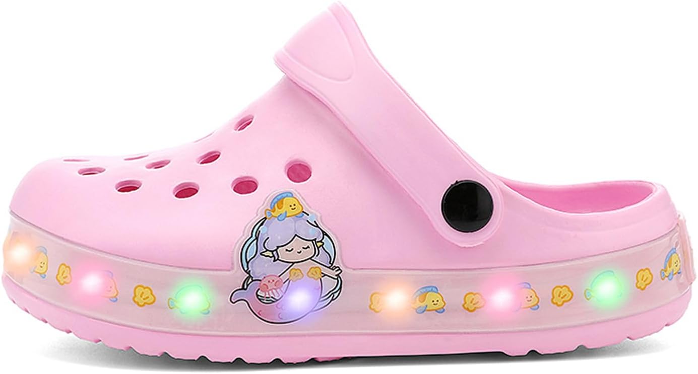 Kid’s LED Clogs Boys and Girls Garden Shoes Beach Water Shoes Cute Cartoon Slides Sandals Lightweight Sandals Non-Slip