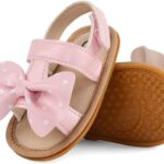 Sonsage Infant Baby Girls Boys Summer Sandals Newborn Bowknot Crib Sandal Outdoor Beach Toddler Pu Leather Soft Rubber Sole Dress Flats First Walker Shoes