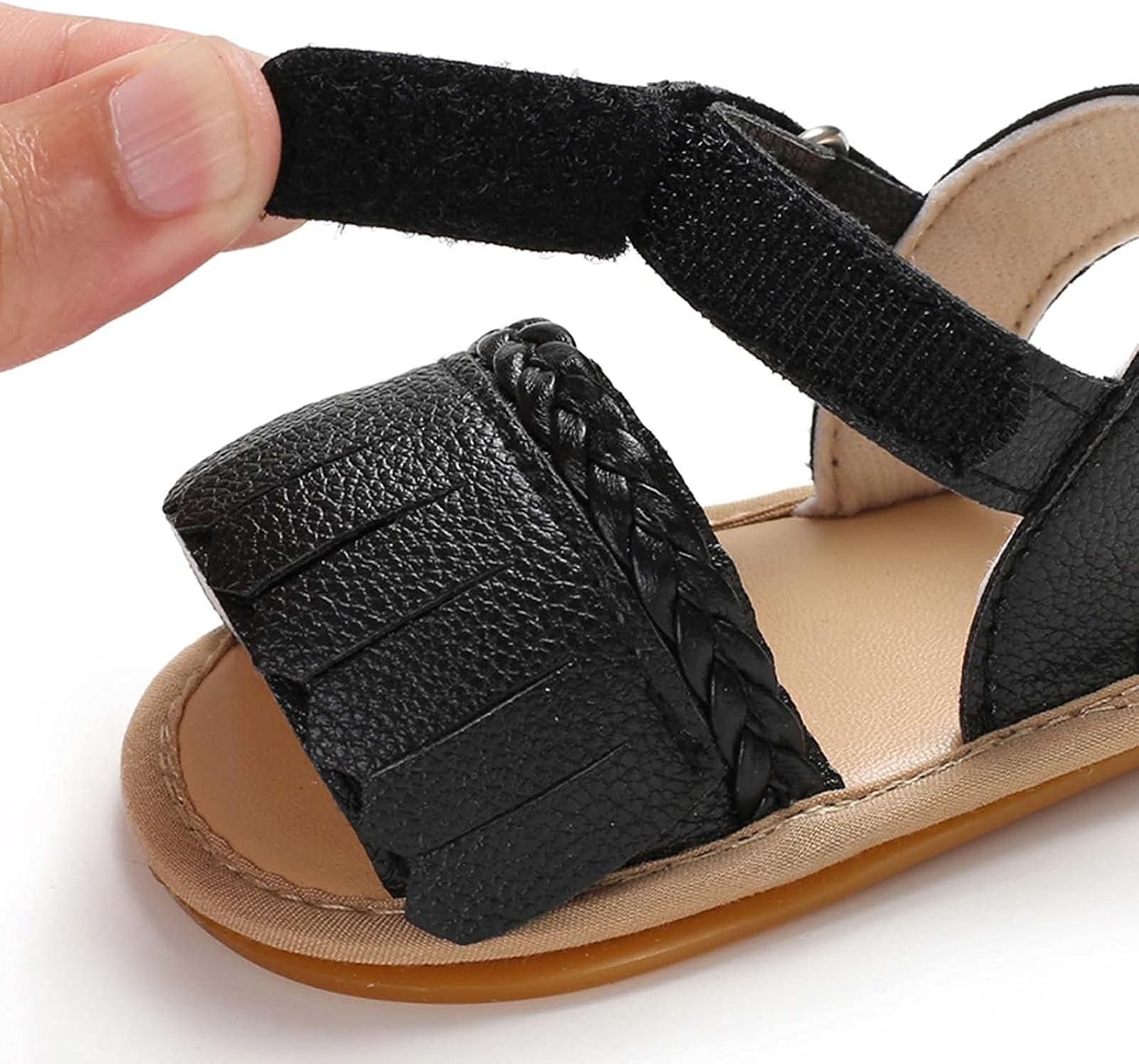 LUCKME Baby Girls Sandals,Toddler Infant Girls Summer Open Toe Sandals with Tassel Non-Slip Flats Crib Shoes Prewalkers for 3-15 Months