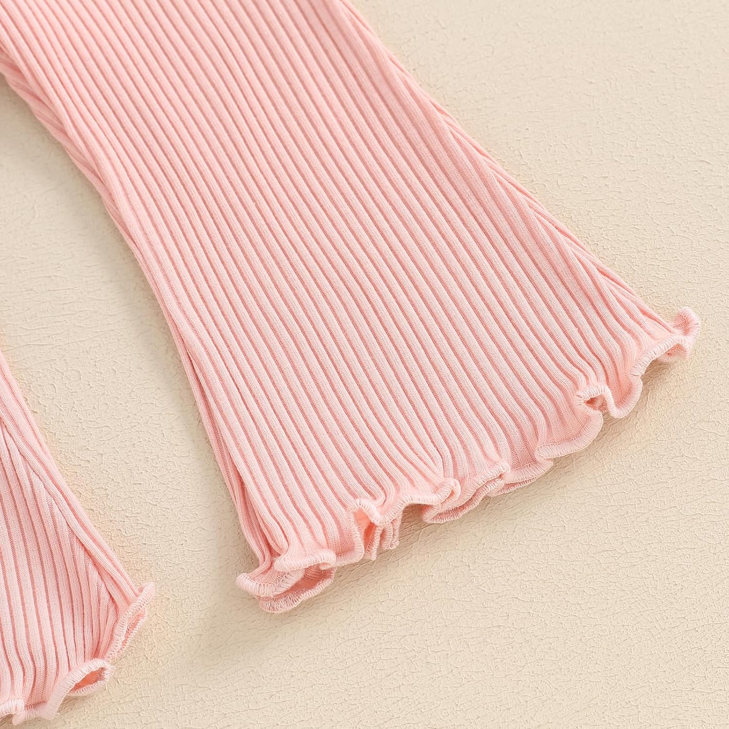 MAHUAOYIXI Baby Girl 2Pcs Birthday Outfits Short Sleeve Letter Embroidery Tops + Flare Pants Set Toddler Girls Clothes Girls Birthday Clothing Set