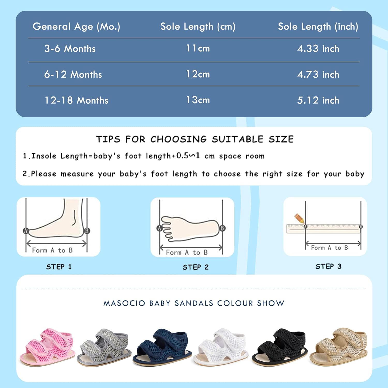 MASOCIO Baby Boy Girl Sandals Open Toe Summer Infant Toddler Anti Slip First Walking Shoes