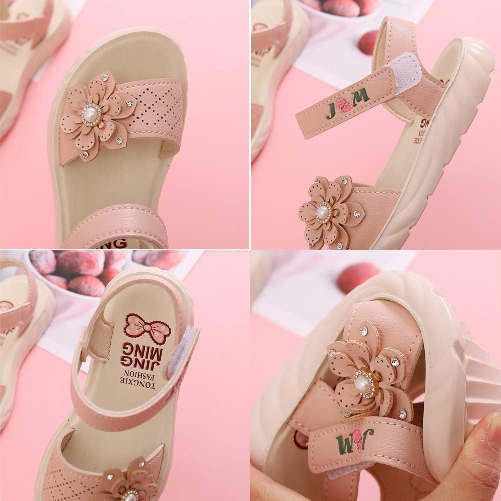 MINBEI Girls Sandals Toddler Little Girls Sandals with Pearls Flower Summer Breathable Leather Shoes