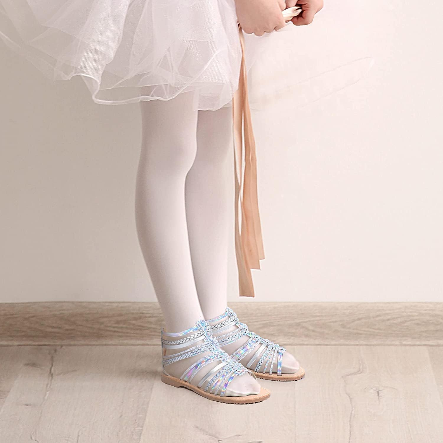FUPPIA Girls Flat Sandals Princess Open Toe Strappy Sandals Zipper Gladiator Flats Sandal with Adjustable Strap Summer Flat Shoes