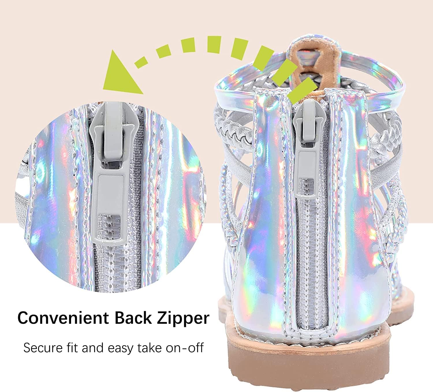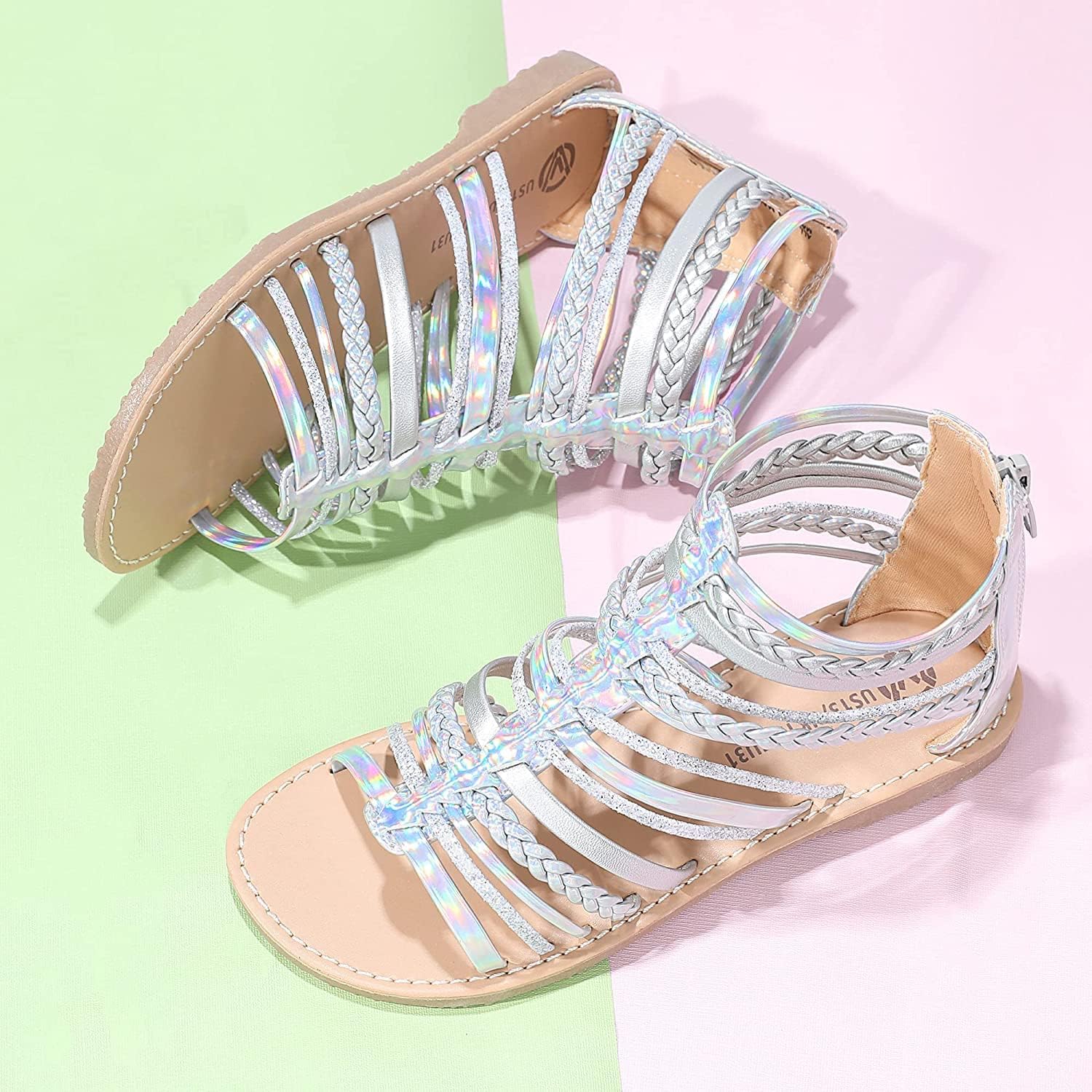 MIXIN Girls Gladiator Sandals for Big Kid Little kids with Strappy Ankle High Back Zipper