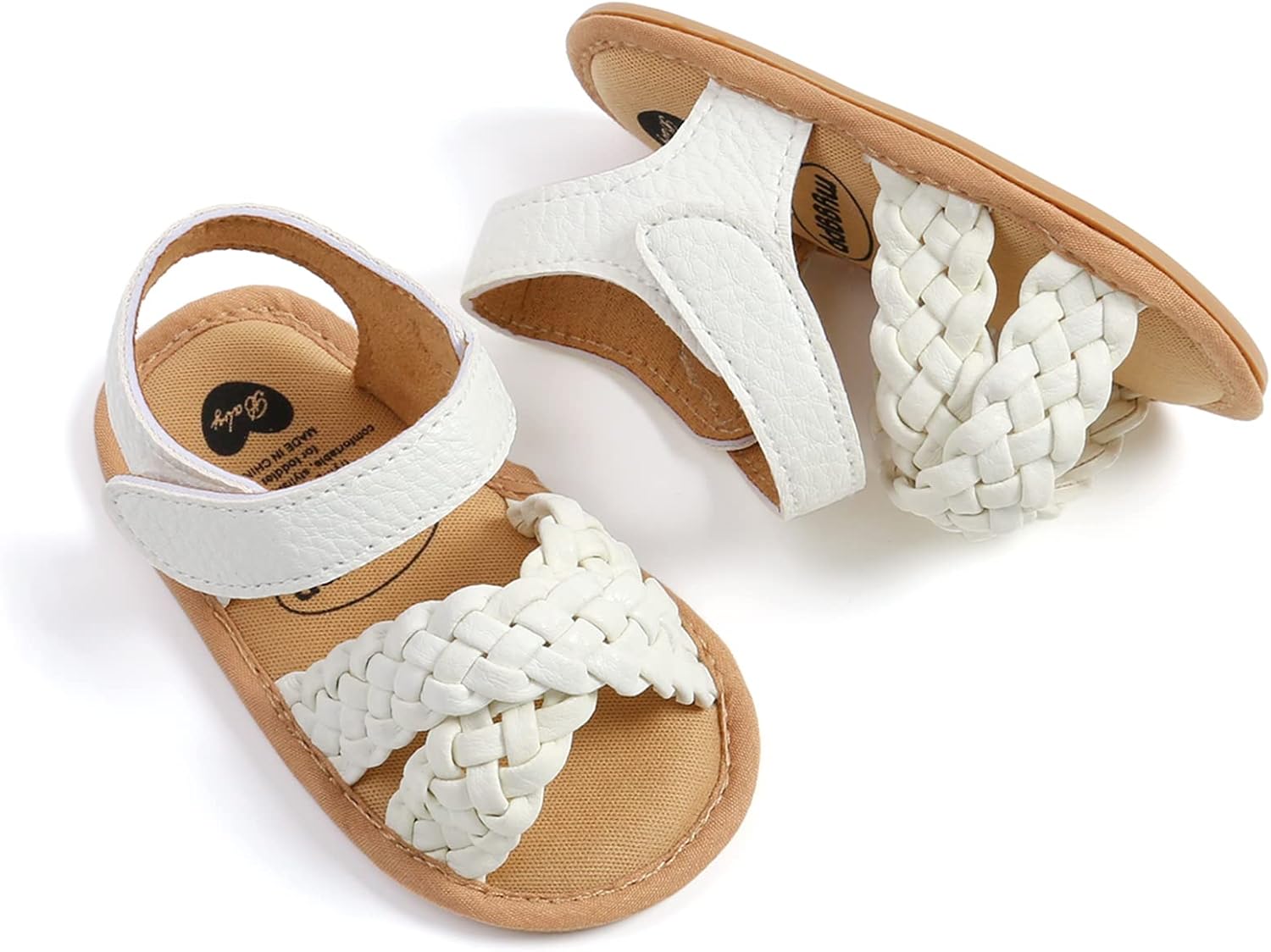 A Hook and Loop Closure makes our baby sandals easy to put on,take off and stay on your infants feet all day.