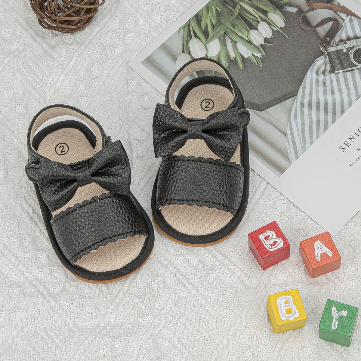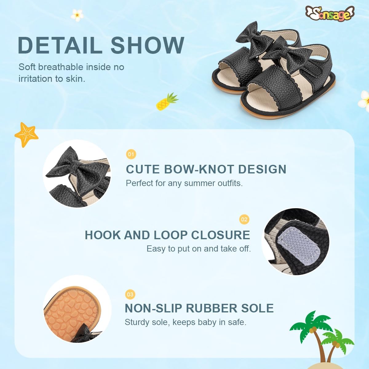 Sonsage Infant Baby Girls Boys Summer Sandals Newborn Bowknot Crib Sandal Outdoor Beach Toddler Pu Leather Soft Rubber Sole Dress Flats First Walker Shoes
